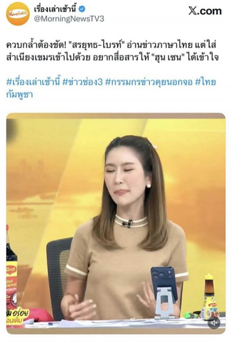 เรียกได้ว่า กลายเป็นประเด็นที่หลายคนจับตามอง วันที่ 25 ก.ย. 2568 สรยุทธ สุทัศนะจินดา ผู้ดำเนินรายการ กรรมกรข่าว คุยนอกจอ ได้ออกมาชี้แจง และกล่าวคำขอโทษต่อสาธารณะ หลังเกิดเสียงวิจารณ์อย่างกว้างขวางจากเหตุการณ์เมื่อ 23 ก.ย. ที่มีการให้นักข่าวร่วมรายการ อย่าง ไบรท์ พิชญทัฬห์ จันทร์พุฒ ลองอ่านข่าวด้วยสำเนียงกัมพูชา จนสร้างความไม่พอใจในสังคมออนไลน์