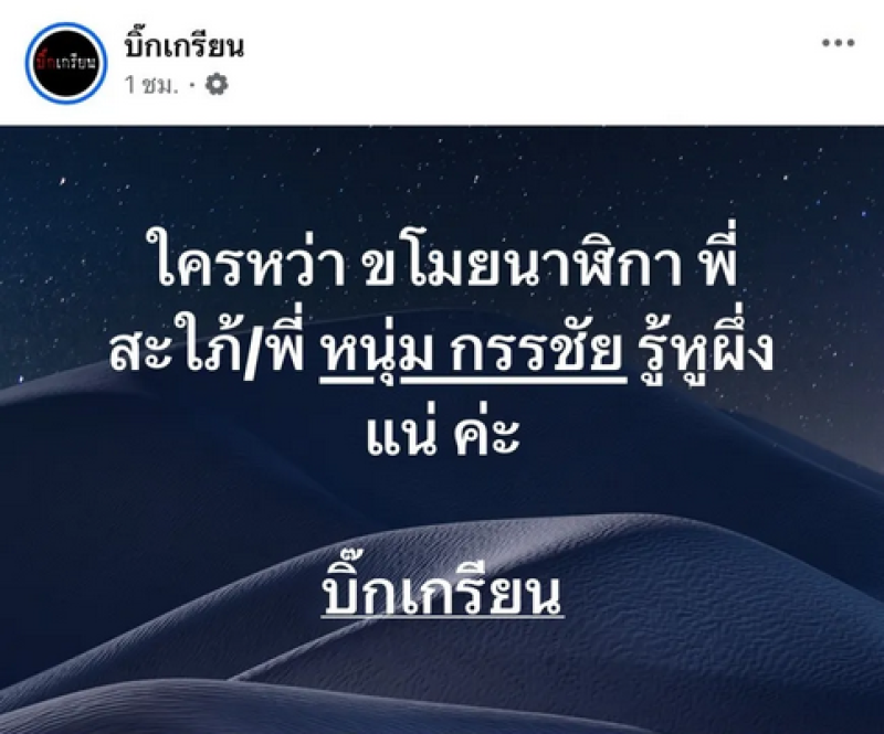 เป็นเรื่องปริศนาที่หลายคนต่างติดตามไม่น้อยเมื่อล่าสุดทางด้านเพจดังอย่างบิ๊กเกรียน ได้ออกมาโพสต์ข้อความระบุว่า ใครหว่า ขโมยนาฬิกา พี่สะใภ้/พี่ หนุ่ม กรรชัย รู้หูผึ่งแน่ ค่ะ