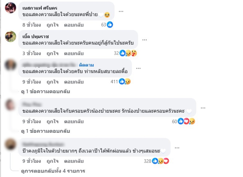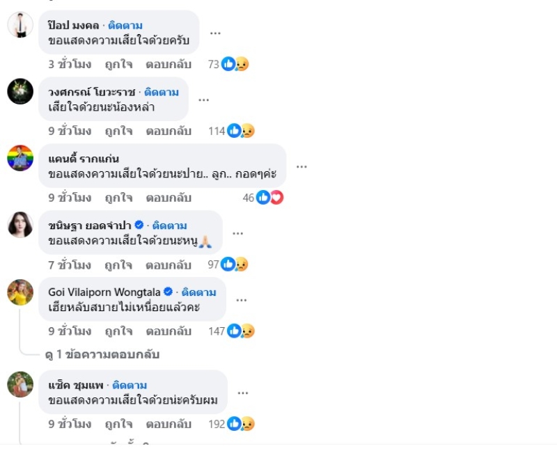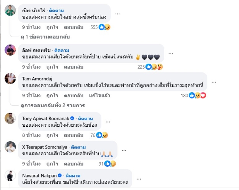 ท่ามกลางคนในวงการ ก็เข้ามาแสดงความเสียใจด้วยจำนวนมาก ไม่จะเป็น เบิ้ล ปทุมราช,ก้อง ห้วยไร่(พร้อมภรรยา ขนิษฐา ) , ครูเต้ย อภิวัฒน์,แคนดี้ รากแก่น,เนสกาแฟ เป็นต้น