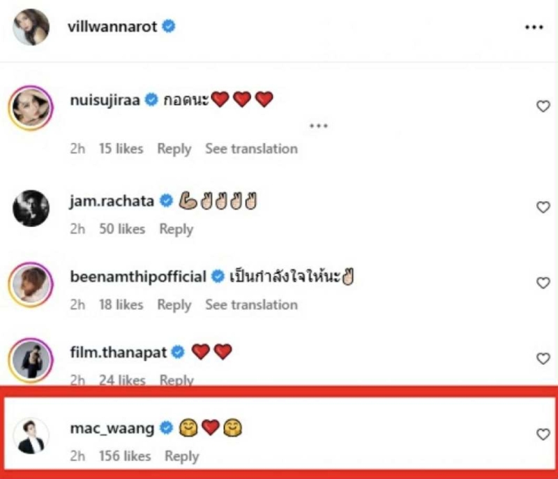 รวมถึงแฟนหนุ่ม แม็ค วีรคณิศร์ ที่รีบมาคอมเมนต์ให้กำลังใจแฟนสาวทันที