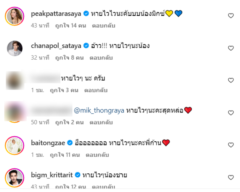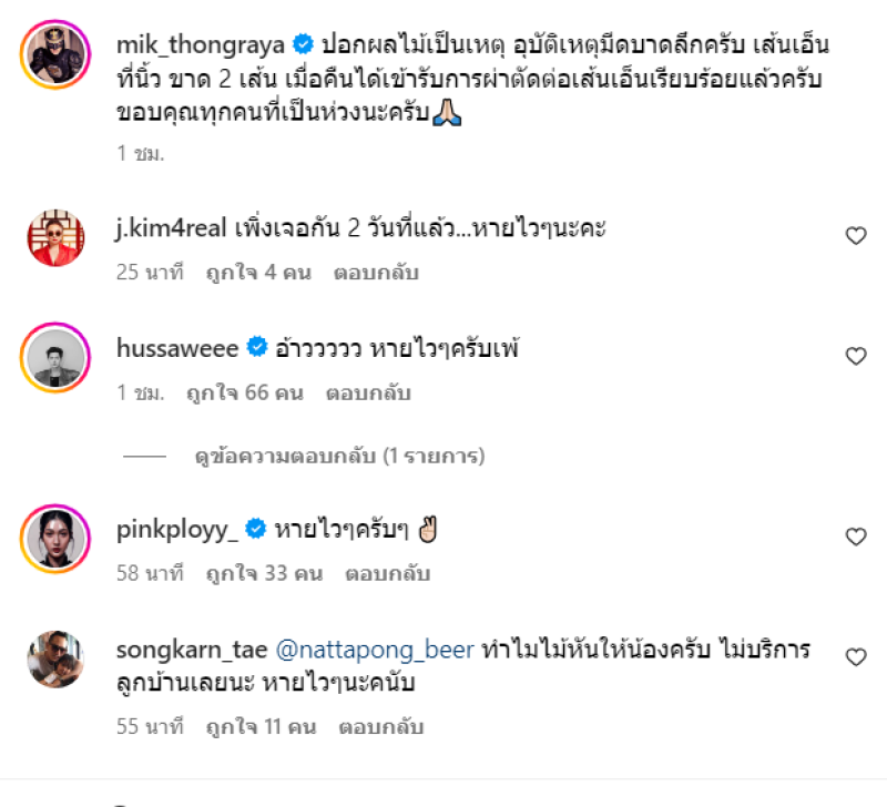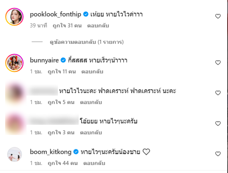 งานนี้ เหล่าเพื่อนๆในวงการและแฟนคลับต่างก็เข้ามาส่งกำลังใจให้หายเร็วๆ ทางทีมข่าวก็ขอเป็นกำลังใจให้เช่นกัน