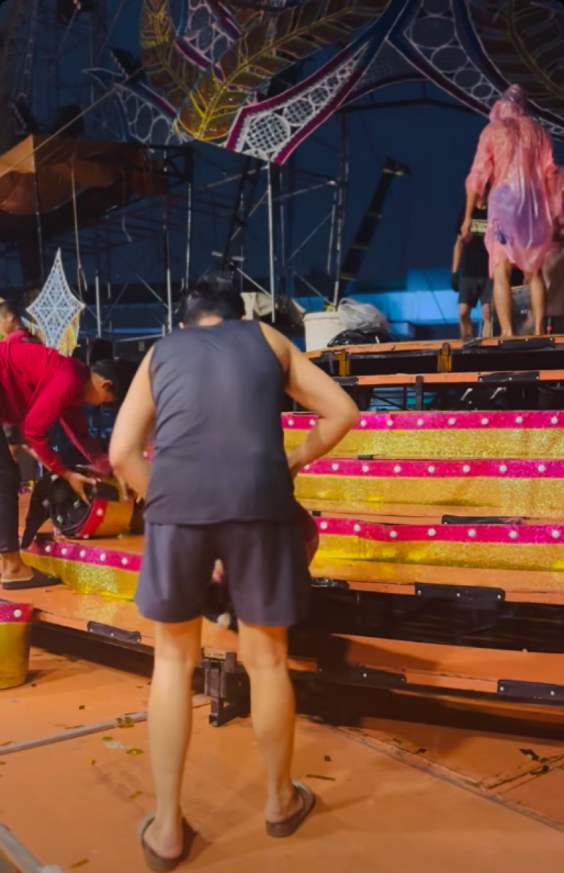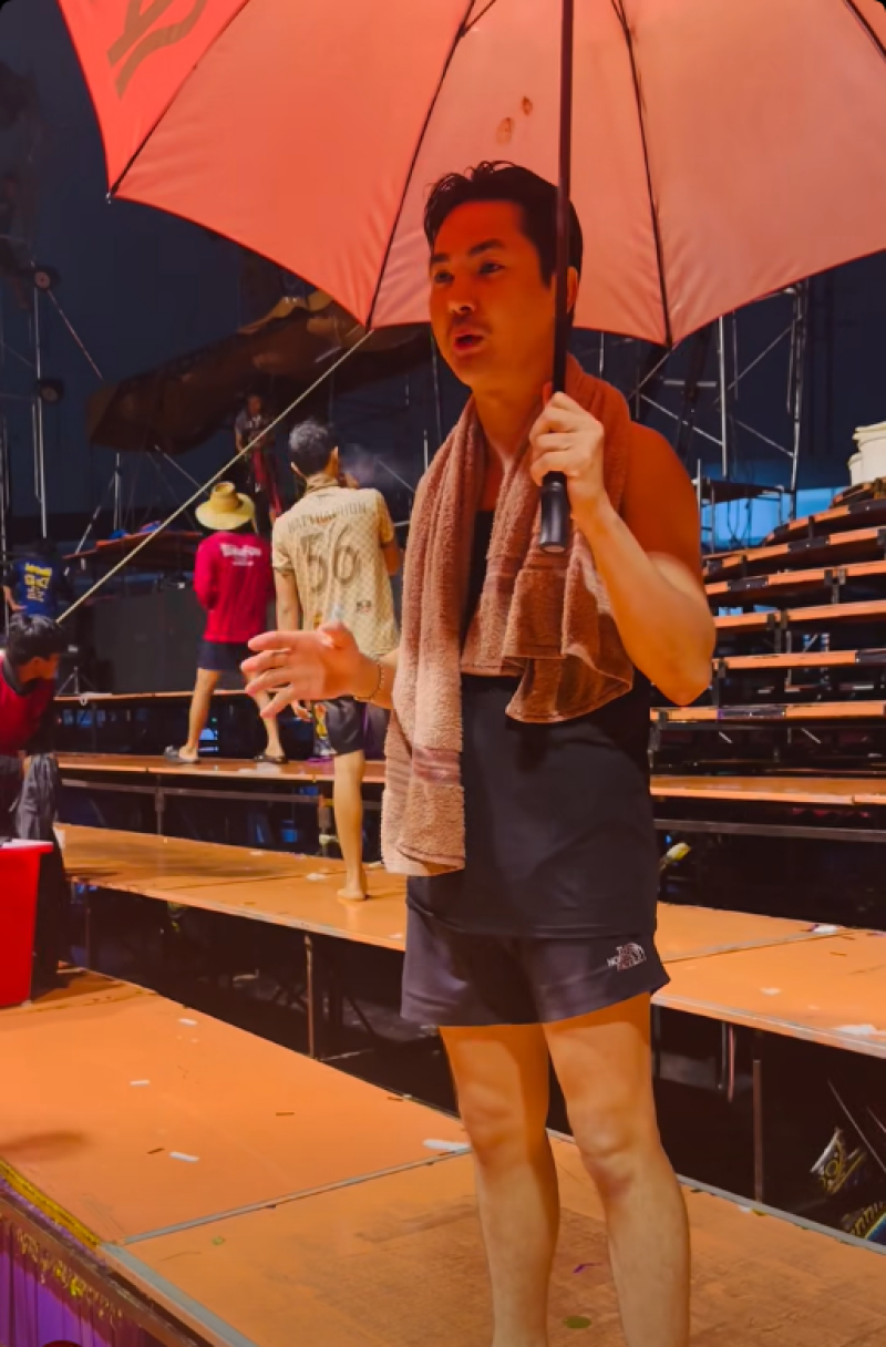 ประมาณเที่ยงคืนที่ลมพายุพัดมาแรง ไฟไม่ได้พัง คือเราเลิก ตี1 แต่ฝนมาเที่ยงคืนก็เลยไม่ได้เก็บของแต่ไม่คิดว่าลมแรงแบบนี้ คือลมแรงๆมาสามครั้ง เอาเวทีพังบางส่วน ดีที่ทีมงานไม่มีใครบาดเจ็บหรือเป็นอะไร ท่ามกลางวงการหมอลำเเละเเฟนๆต่างส่งกำลังใจกันอย่างมาก