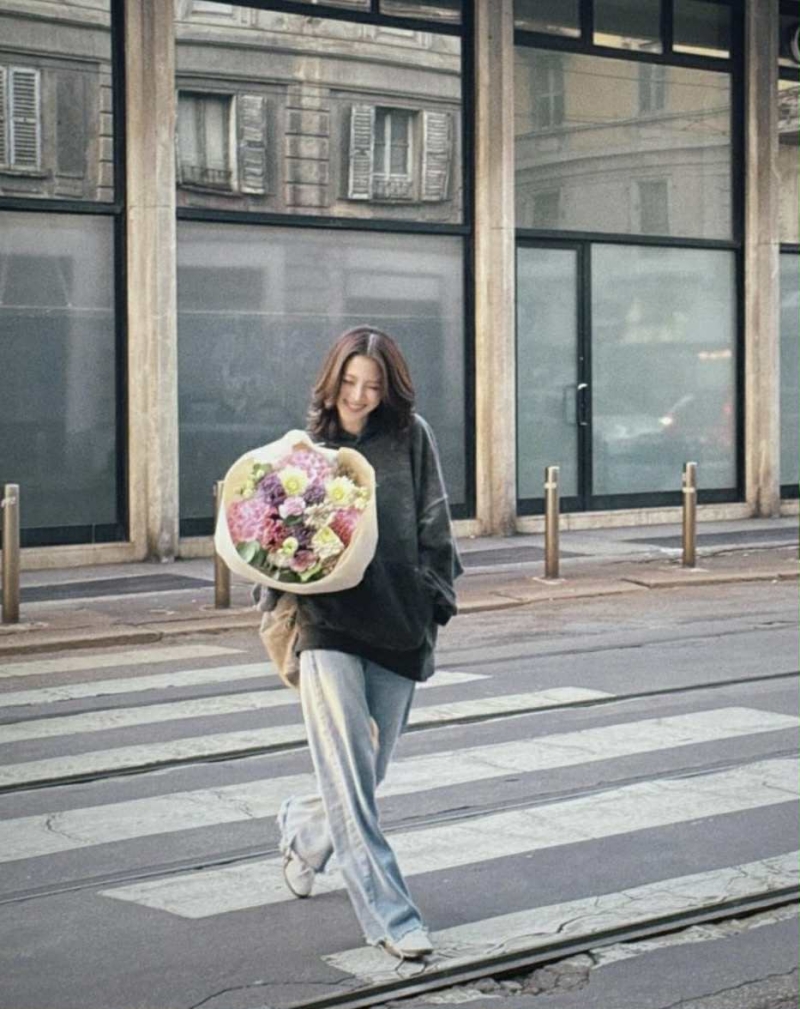 โดย ภาพดังกล่าว ใบเฟิร์น มาในลุคลำลองสบายๆ แต่ยังคงเต็มไปด้วยเสน่ห์ความน่ารัก เฉพาะดอกไม้ช่อโตที่ เธอ ถืออยู่ในมือ