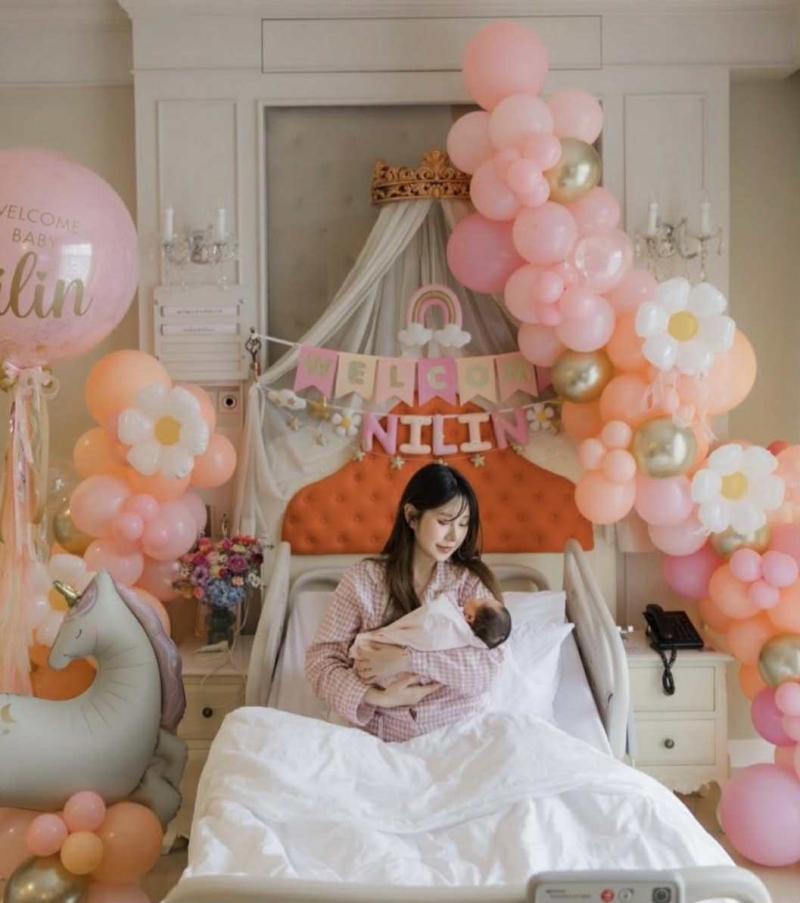 บรรยากาศรอบห้องคลอดเต็มไปด้วยความอบอุ่น และรอยยิ้ม ตกแต่งด้วยลูกโป่งสีชมพูละมุน ตอกย้ำโมเมนต์สุดพิเศษที่ บีเบล ได้ร่วมแชร์ให้ทุกคนได้เห็นความน่ารักของลูกสาว