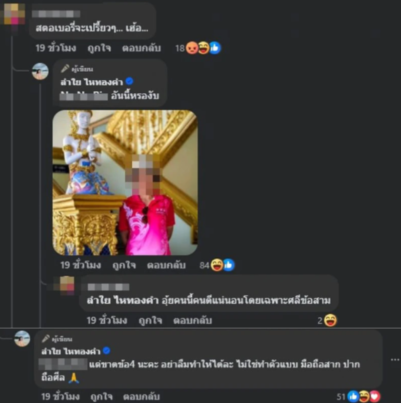 แต่หลังลำไยโพสต์ภาพเก็บตกทริปญี่ปุ่น ก็ไม่วายเจอคอมเมนต์แซะเข้ามาแบบแรงๆ โดยเฉพาะประเด็นพาดพิงเรื่อง ศีลข้อ 3 ซึ่งเจ้าตัวก็ไม่ขอทนให้โดนกล่าวหาเงียบๆ ออกโรงฟาดกลับทันทีด้วยแคปชั่นจี๊ดๆ ว่า แต่ขาดข้อ 4 นะคะ อย่าลืมทำให้ได้ล่ะ ไม่ใช่ทำตัวแบบ มือถือสาก ปากถือศีล