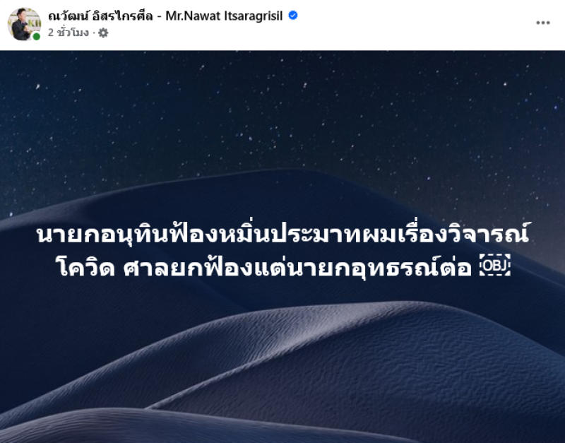 ทำเอาชาวเน็ตต่างเข้ามาคอมเมนต์กันอย่างมากเมื่อ บอสณวัฒน์ อิสรไกรศีล ได้ออกมาโพสต์ข้อความว่า นายกอนุทินฟ้องหมิ่นประมาทผมเรื่องวิจารณ์โควิด ศาลยกฟ้องแต่นายกอุทธรณ์ต่อ
