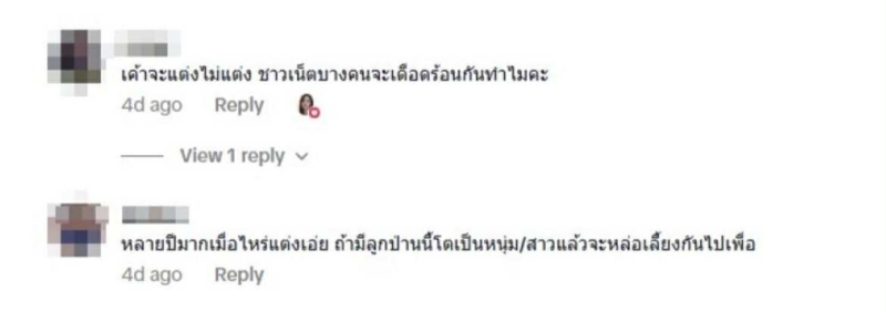 ท่ามกลางเสียงวิจารณ์ มีผู้ใช้รายหนึ่งได้ออกมาปกป้อง โดยกล่าวว่า เรื่องแต่งเป็นเรื่องส่วนตัว ไม่เห็นต้องเดือดร้อนแทนเขา ด้าน สาวมิ้นต์ ได้กดไลก์ข้อความนี้ทันที