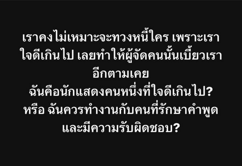ฉันคือนักแสดงที่ใจดีเกินไป? หรือฉันควรเลือกทำงานกับคนที่รักษาคำพูดและมีความรับผิดชอบ เฮ้อออออ น่าเศร้าใจ โคตรห่วย ทั้งนี้ทงด้านพระเอกดัง มาริโอ้ เมาเร่อ ได้เข้ามาคอมเมนต์เดือดว่า ใครทำเพื่อนผมว่ะ