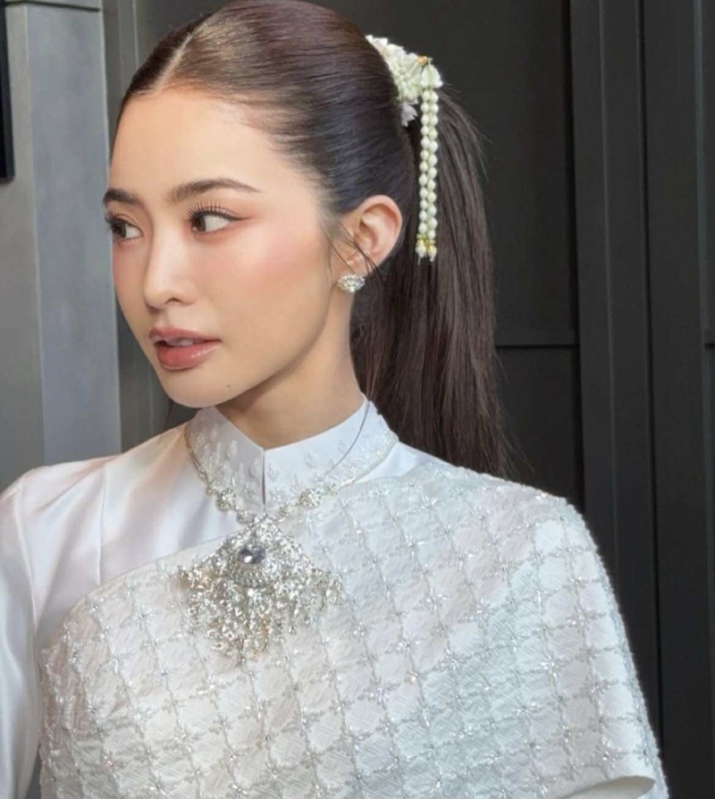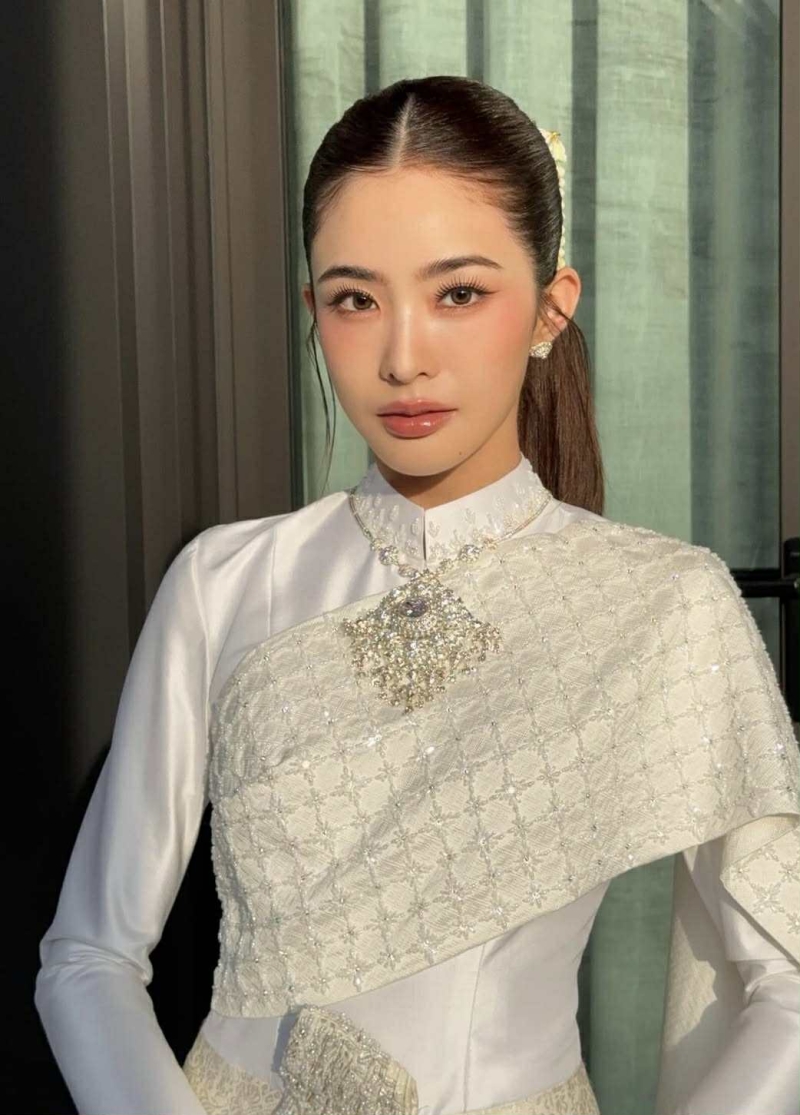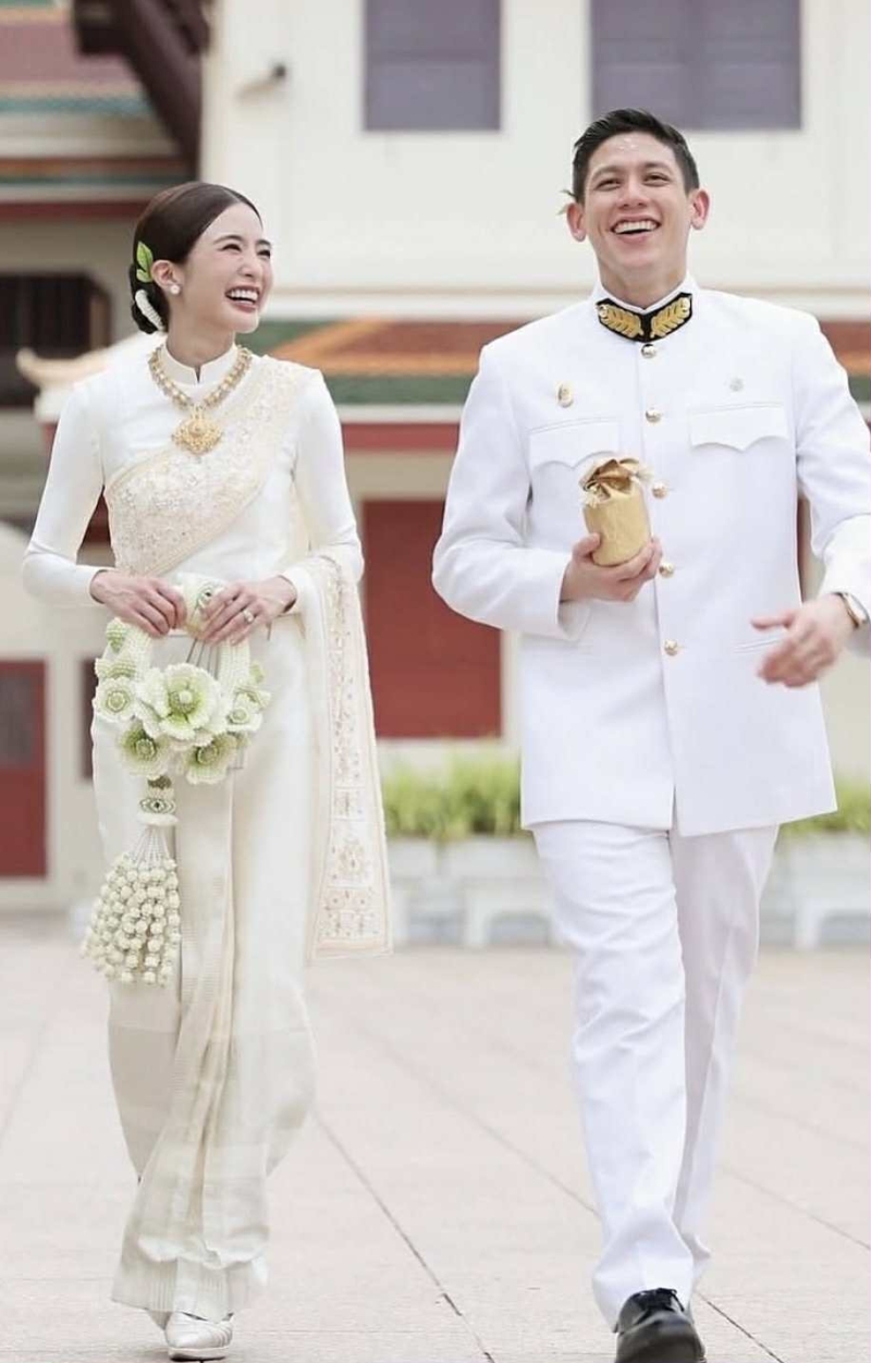 โดย เจ้าสาว มายด์ ลภัสลัล ปรากฏตัวในชุดไทยศิวาลัย ประยุกต์สีขาวสะอาดตา ออกแบบโดยแบรนด์ Finale Wedding Studio ซึ่ง เน้นรายละเอียดอ่อนช้อย และสง่างาม ทำให้ลุคเจ้าสาว ดูเรียบหรูแต่ยังเต็มไปด้วยความหวานละมุน