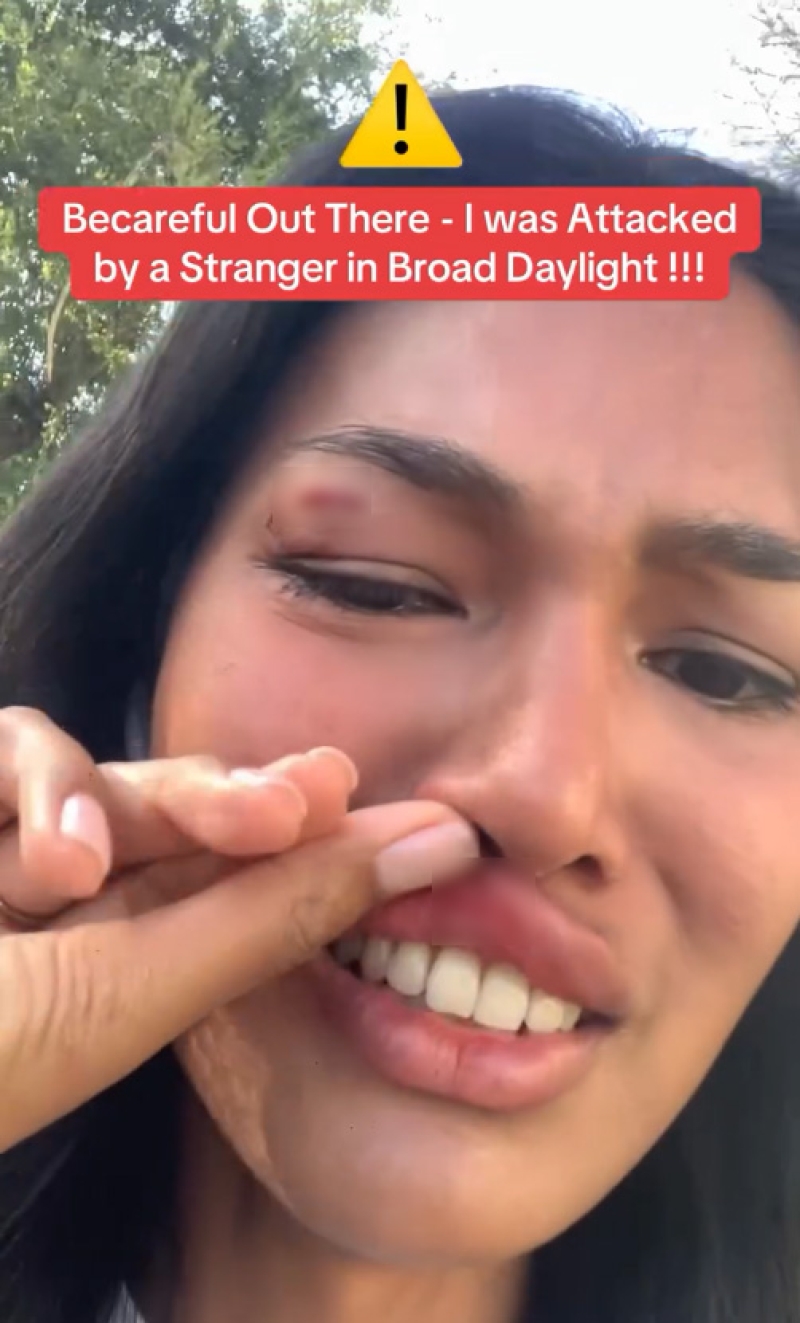 โดยเล่าว่า Never thought this would happen to me - I was attacked by a stranger for no reason. It happened in broad daylight, and I want to warn everyone to be careful when walking alone. No one deserves to go through this.