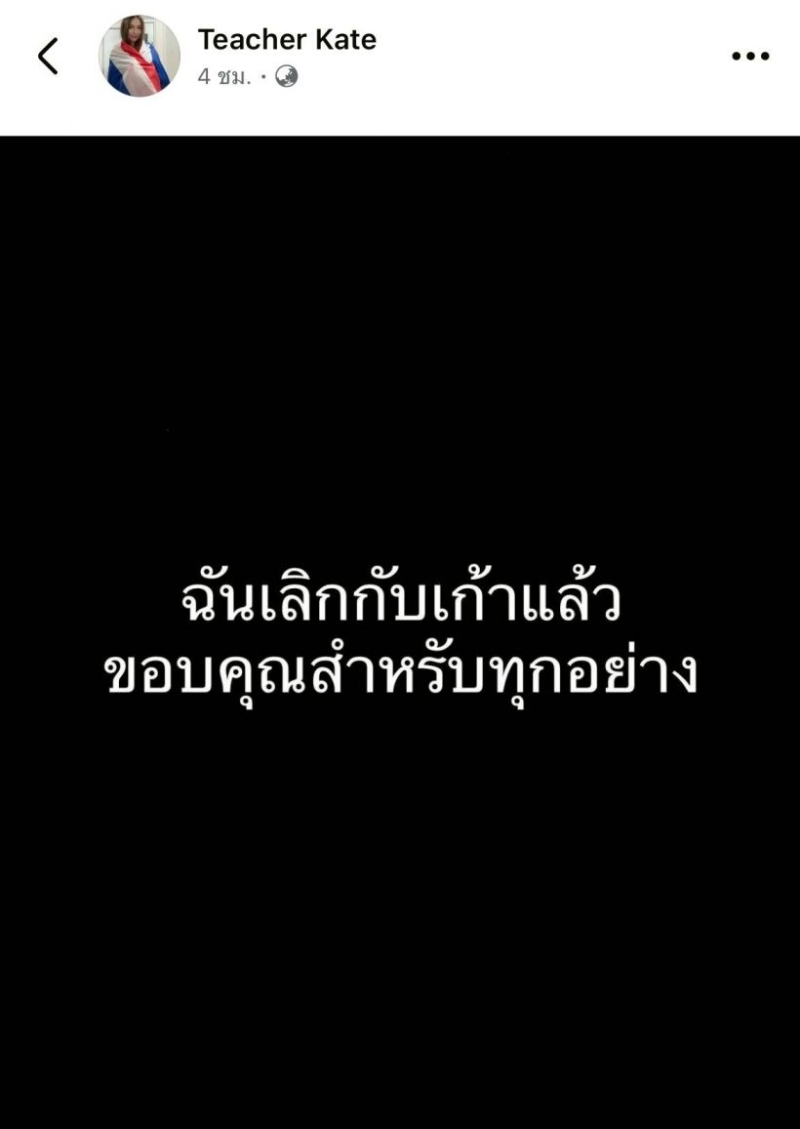 แต่ความสงบอยู่ได้ไม่นาน เมื่อฝั่ง ครูเคท โพสต์ข้อความสั้นแต่สะเทือนโซเชียล ผ่านเฟซบุ๊ก Teacher Kate ว่า