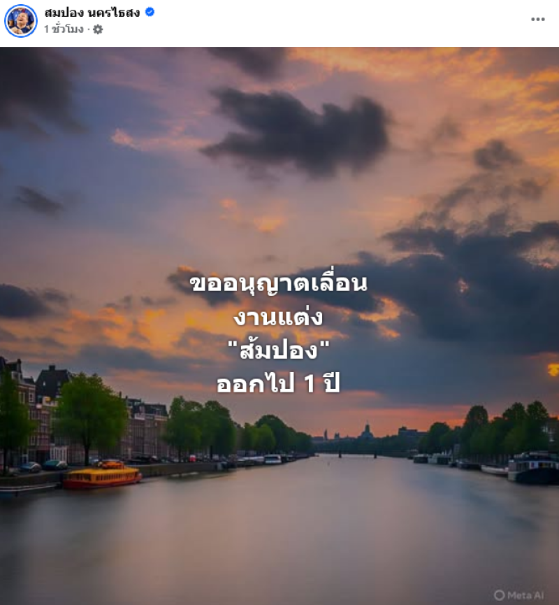ทั้งนี้ทางด้าน สมปอง นครไธสง และภรรยา น้องส้ม ที่คบหาดูใจกันมานาน 3 ปี ได้ออกมาประกาศเลื่อนงานแต่งว่า ขออนุญาตเลื่อน งานแต่ง ส้มปอง ออกไป 1 ปี ผมเป็นคนที่จัดงานทีต้องสนุกสนานสุดๆบรรยากาศตอนนี้ผมสนุกไม่ได้จริงๆครับ ขอเลื่อนไปปลายปีหน้าครับ โดยก่อนหน้าได้ออกมาเผยแพลนเเต่งวันที่ 31 ธันวาคม