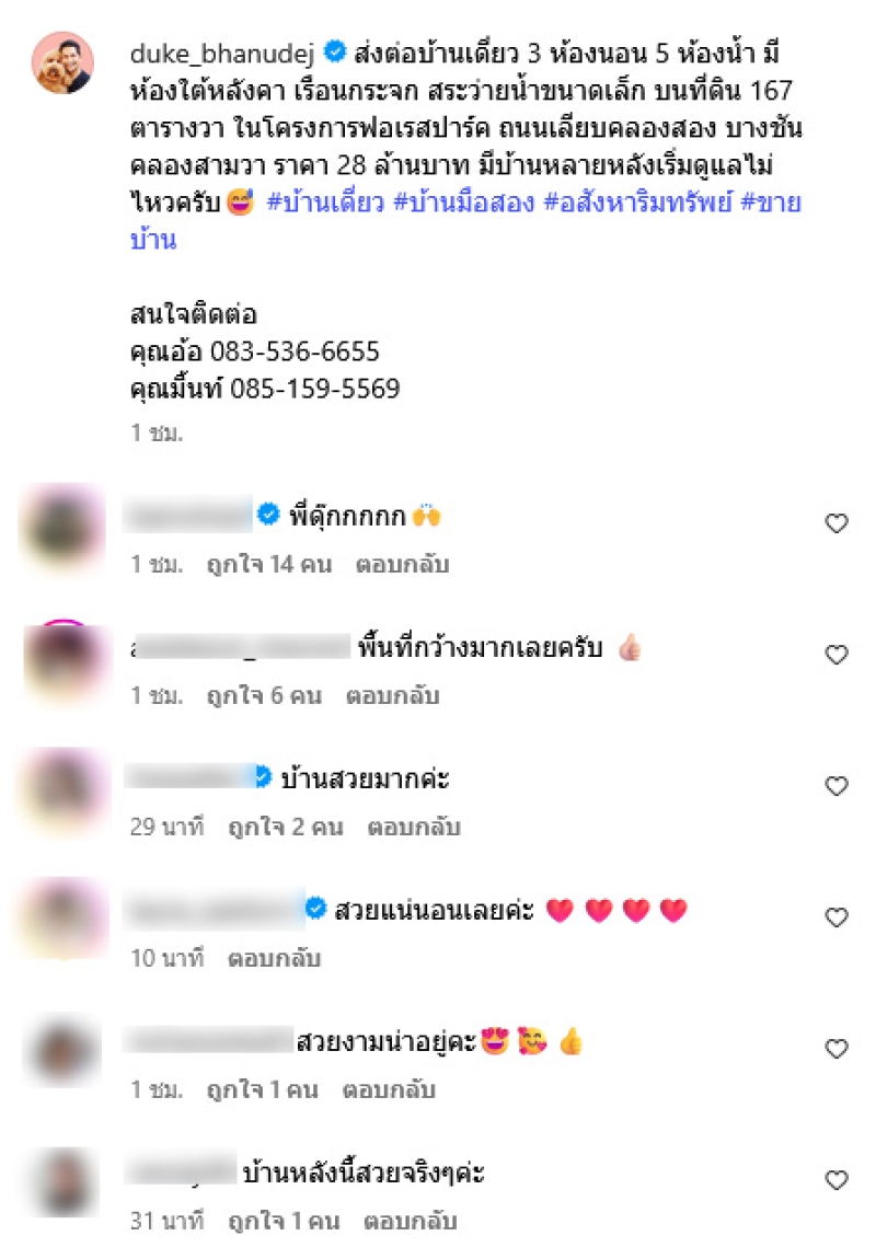 เป็นอีกหนึ่งนักแสดงรุ่นใหญ่มากฝีมือสำหรับ ดุ๊ก ภาณุเดช วัฒนสุชาติ ที่มักจะชอบตกแต่งบ้านจัดสวนให้สวยงาม ล่าสุด ดุ๊ก ได้ออกมาโพสต์ประกาศขายบ้านสุดหรูท่ามกลางบรรยากาศธรรมชาติ พร้อมเขียนข้อความระบุว่า