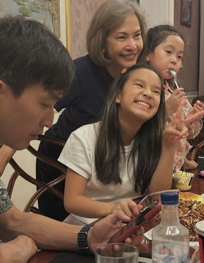 โดย มีแคปชั่นว่า ปีใหม่ กับ แม่แอฟ มารับปู่กับย่าไปทานข้าวที่ร้าน Shade Bangkok ปีใหม่ โตขึ้นมากเกือบเท่าอาผา ใส่รองเท้าเบอร์เดียวกับคุณย่า เลยยึดรองเท้าคิตตี้ของคุณย่า ไปเรียบร้อย