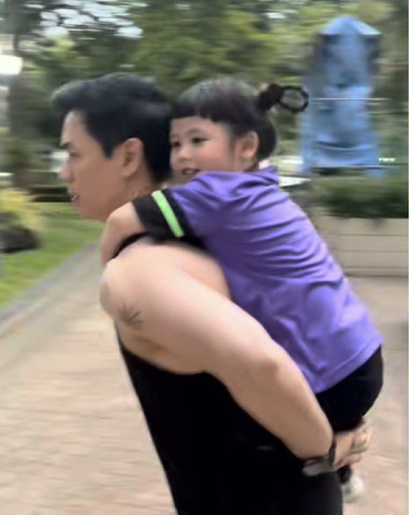 โมเมนต์ที่แฟนๆ เห็นแล้วต้องยิ้มคือ พ่อน็อต อุ้มน้องเกล ขี่หลัง ขณะที่แม่ชม วิ่งตามพร้อมกับรถเข็นเด็ก
