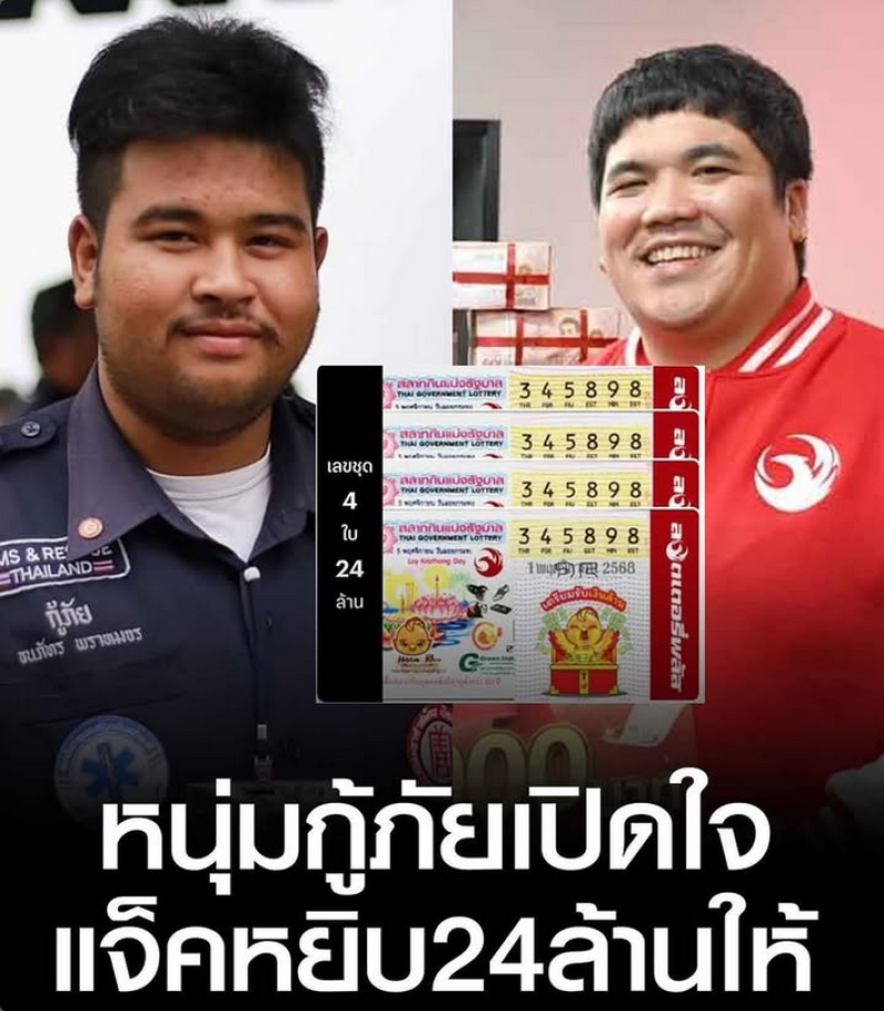 ดวงเฮงสุดๆเลยทีเดียวสำหรับหนุ่มกู้ภัย ที่ถูกลอตเตอรี่ งวดวันที่ 1 พ.ย. 2568 รับเงินรางวัลไป 24 ล้านบาท ซึ่งเจ้าตัวบอกว่า รางวัลนี้ แจ็ค แฟนฉัน เป็นคนสุ่มหยิบให้ และจะนำเงินรางวัลนี้ไปซื้อรถพยาบาล ล่าสุด แจ็ค แฟนฉัน ได้ออกมาเคลื่อนไหวผ่านทางอินสตาแกรมว่า