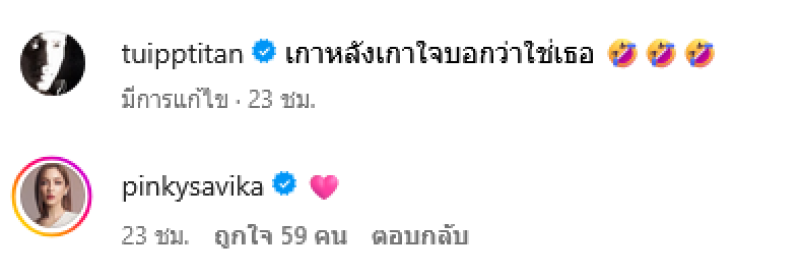 ท่ามกลางแฟนๆต่างเข้ามาคอมเมนต์ชื่นชมในความหล่อกันอย่างมาก รวมถึงนางเอกสาว พิ้งกี้ สาวิกา ยังได้เข้ามาคอมเมนต์อิโมจิหัวใจสีชมพูอีกด้วย