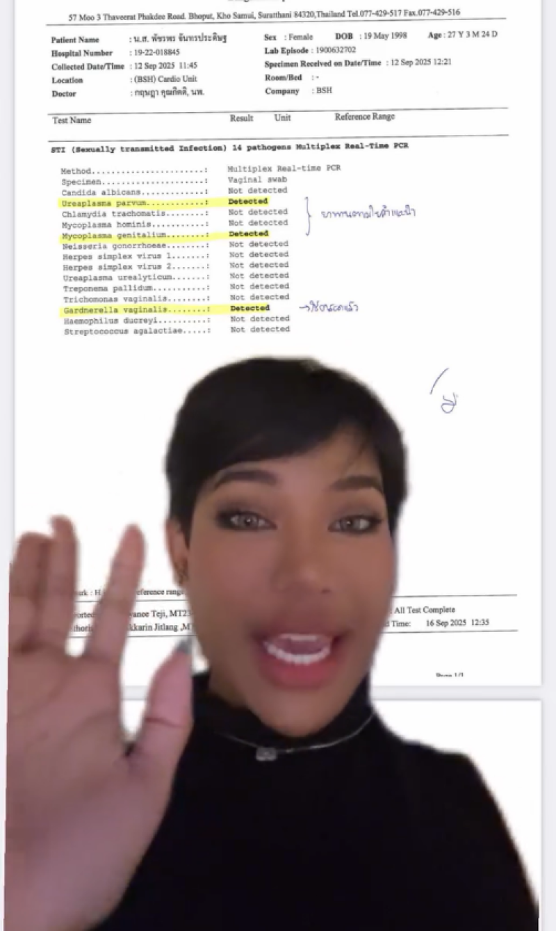 จากกรณีที่ทางด้าน น้ำ พัชรพร จันทรประดิษฐ์ มิสแกรนด์2020 ได้ออกมาเปิดยเผยว่า หย่ากับสามีชาวต่างชาติเเล้ว โดยได้มีการนอกใจเเละนำเชื้อมาติด แต่ตอนนี้รักษาหายเเล้ว ทั้งนี้ น้ำ ได้ออกมาโชว์ใบรับรองแพทย์เพื่อยืนยันว่าไม่ได้โกหก