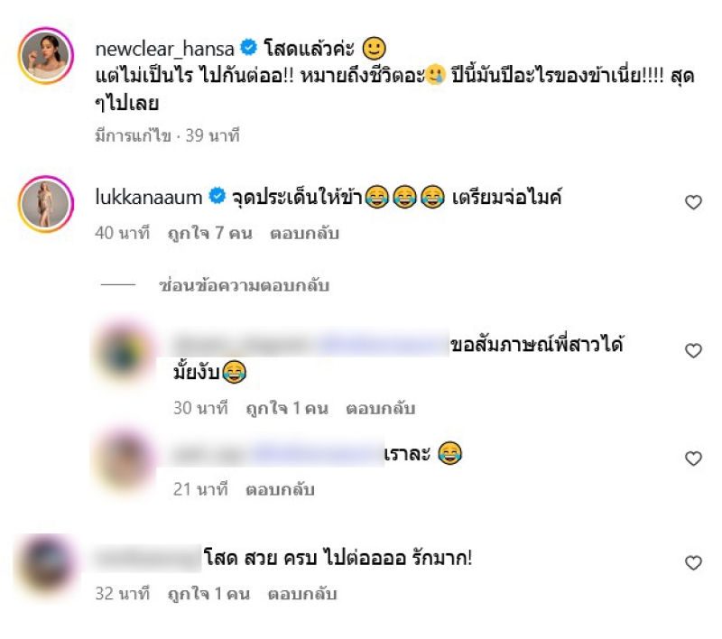 ด้านพี่สาว อย่าง อุ้ม ลักขณา ก็เข้ามาคอมเมนต์ด้วยข้อความว่า “จุดประเด็นให้ข้า เตรียมจ่อไมค์”