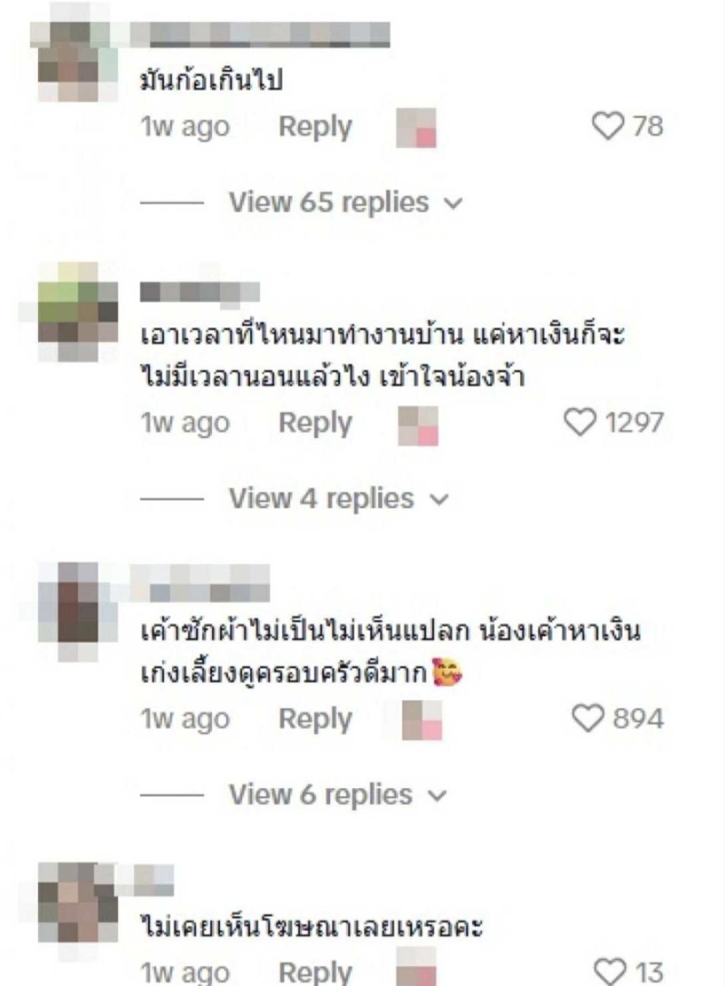 ขณะเดียวกัน ก็มีผู้คนอีกกลุ่มเข้าใจ เบสท์ โดย ชี้ว่า เธอ ทุ่มเทกับงาน และ การเรียน เรื่องงานบ้านจึงไม่ใช่เรื่องแปลก อีกทั้งยังมีคนคอยช่วยเหลือเรื่องซักผ้าอยู่แล้ว ทำให้มุมมองทั้งสองฝั่งปะปนกันบนโซเชียลอย่างชัดเจน