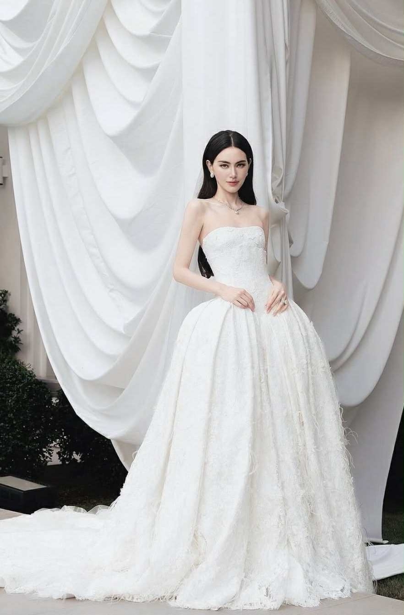 ซึ่ง เจ้าสาวใหม่ มาในลุคชุดแต่งงานสีขาวเรียบหรู แฝงความอ่อนโยน และ สง่างาม ส่วนเจ้าบ่าวเต๋อ เลือกชุดสูทโทนครีมอบอุ่น ดูเข้ากันอย่างลงตัวทุกมุมมอง