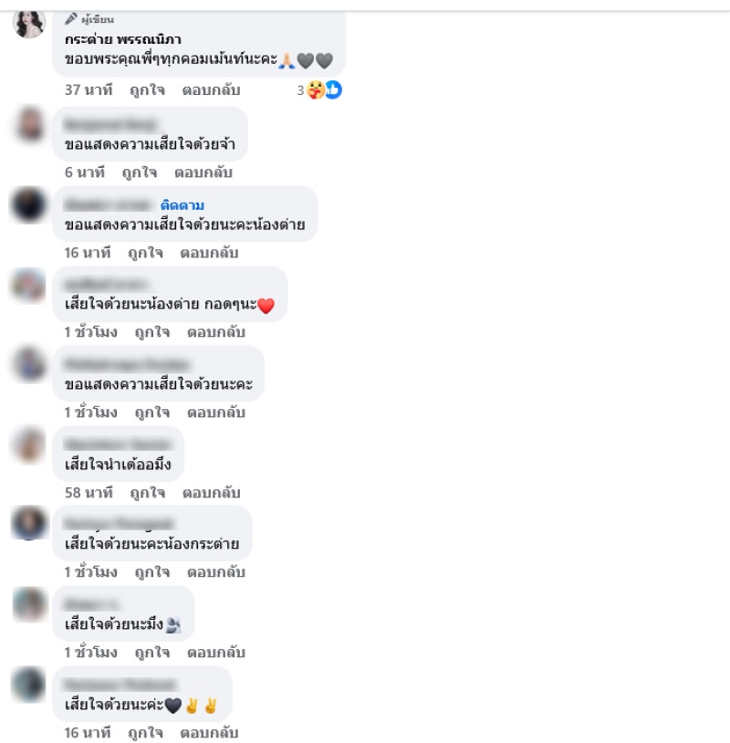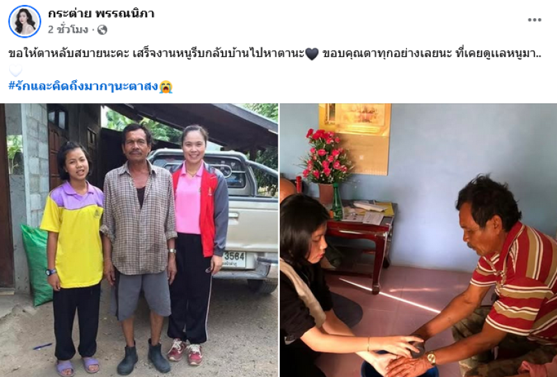 ขอให้ตาหลับสบายนะคะ เสร็จงานหนูรีบกลับบ้านไปหาตานะ ขอบคุณตาทุกอย่างเลยนะ ที่เคยดูเเลหนูมา #รักและคิดถึงมากๆนะตาสง ท่ามกลางแฟนๆต่างเข้ามาคอมเมนต์แสดงความเสียใจเเละส่งกำลังใจให้อย่างล้นหลาม