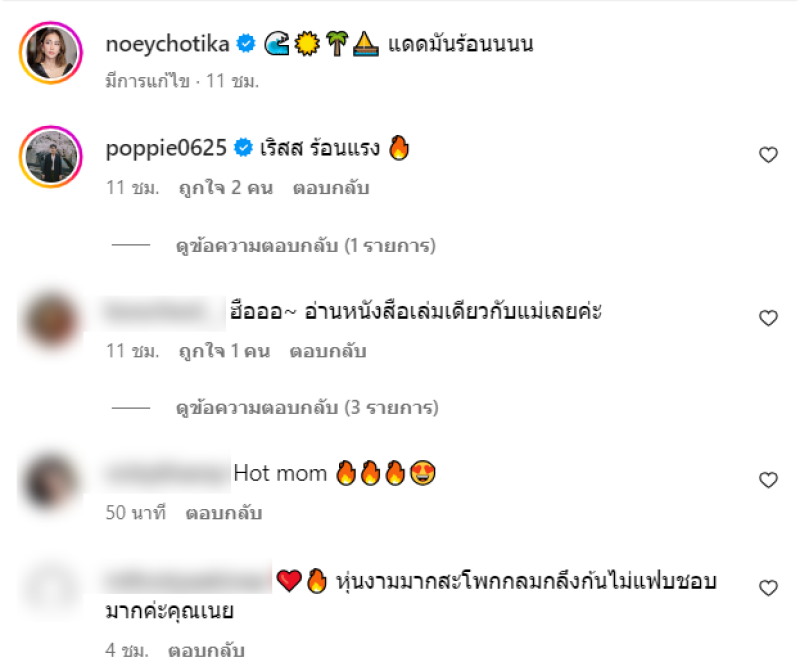 เรียกได่ว่า เป็นครอบครัวสุดอบอุ่น อย่าง เนย โชติกา และนักธุรกิจหนุ่ม อาร์ม จันทร์สิริ ได้มีลูกชายและลูกสาวอย่างน่ารักมากๆ และมีแฟนคลับไม่น้อยหน้าคุณแม่เลยก็ว่าได้ ล่าสุดทั้งครอบครัวได้พากันไปเที่ยวทริปทะเล แต่ความแซ่บของคุณแม่เนยนั้นไม่แผ่วจริงๆ สมแล้วนางร้ายหุ่นแซ่บ ไม่ว่าจะเป็นคุณแม่ลูกสองแล้วก็ตาม แตาความสวยและหุ่นนั้น ยังเป๊ะมาก โดยมาลุคบีกินี่ พร้อมระบุแคปชั่นสั้นๆว่า แดดมันร้อนนนน