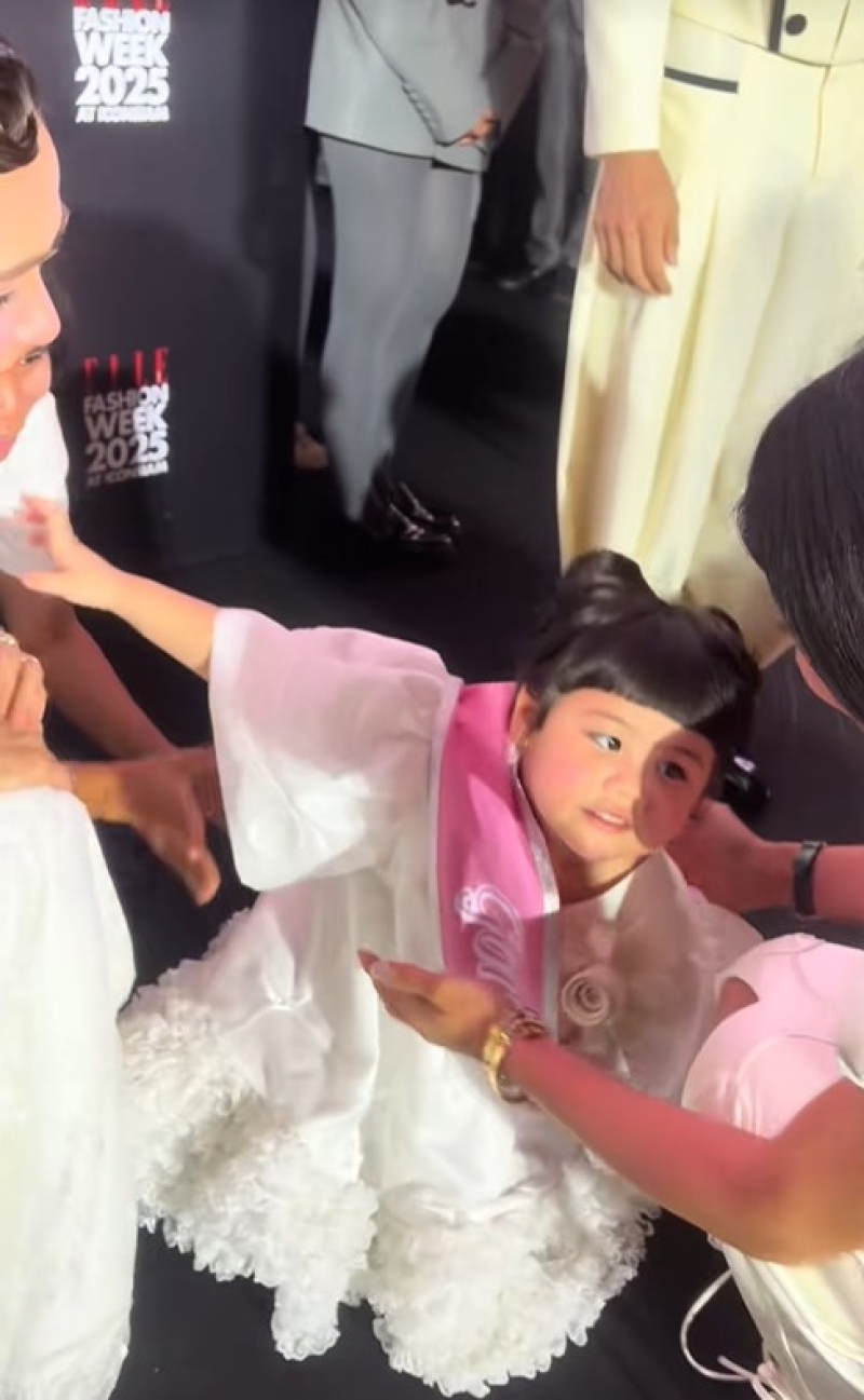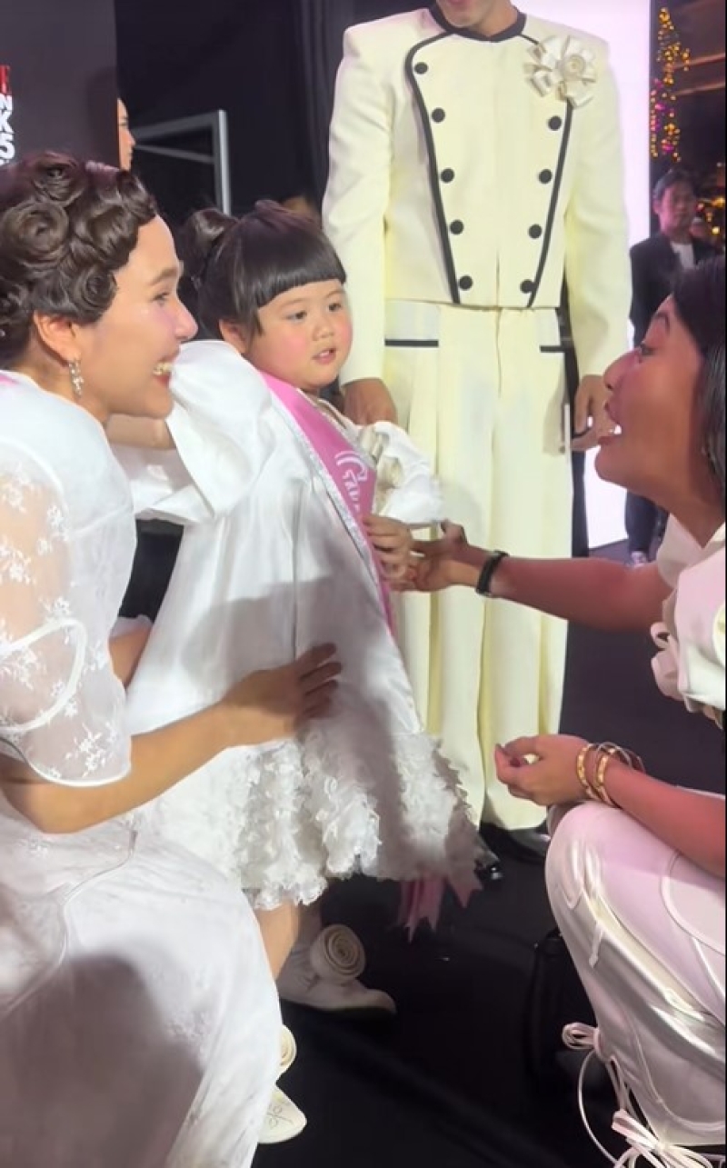 ส่วนน้องเกลตอบแบบเด็กๆไปว่า "เกลมาดูแฟชั่นโชว์" ทำให้คนรอบข้างและเจ้าฟ้าหญิง ต่างเอ็นดูในความน่ารักของน้องเกลมากนั้นเอง