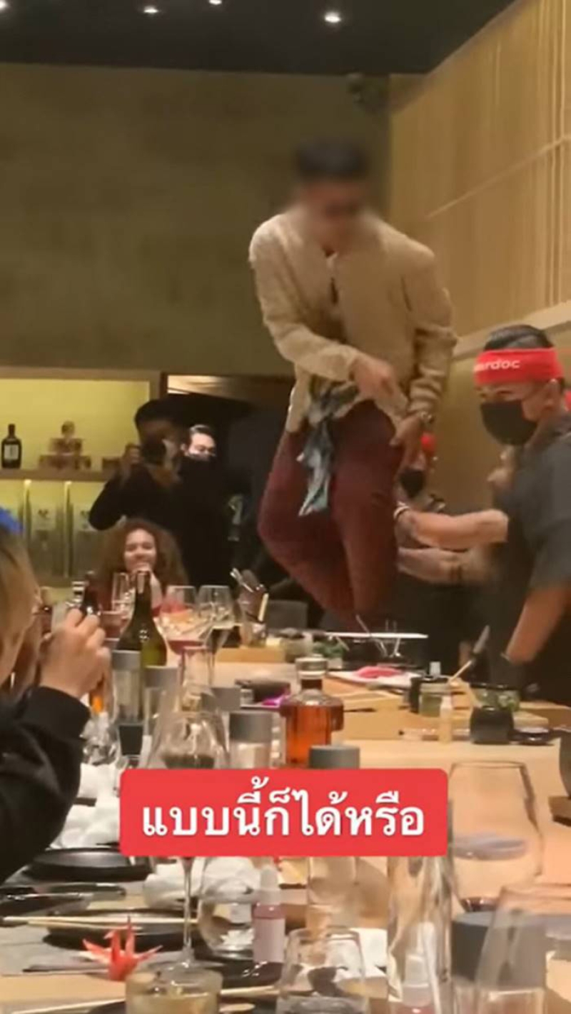 โดยเพจ ผู้บริโภค ได้แชร์คลิปจากกลุ่ม พวกเราคือผู้บริโภค เป็นภาพ แจ็ก แปปโฮ กระโดดขึ้นไปยืนบนบาร์ไม้ หรือโต๊ะเสิร์ฟอาหาร ภายในร้านอาหารญี่ปุ่นโอมากาเสะแห่งหนึ่งย่านพัฒนาการ พร้อมตั้งคำถามถึงความเหมาะสม หลายคนถึงกับประกาศว่า ถ้าไม่เปลี่ยนโต๊ะทั้งแผง จะไม่กลับไปกินอีก