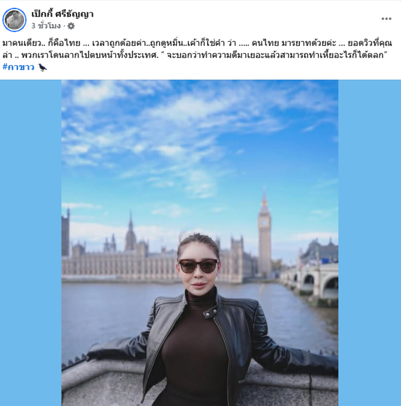 มาคนเดียวก็คือไทย เวลาถูกด้อยค่าถูกดูหมิ่นเค้าก็ใช่คำ ว่า คนไทย มารยาทด้วยค่ะ ยอดวิวที่คุณล่า พวกเราโดนลากไปตบหน้าทั้งประเทศ จะบอกว่าทำความดีมาเยอะแล้วสามารถทำเหี้ยอะไรก็ได้ตลก #กาขาว