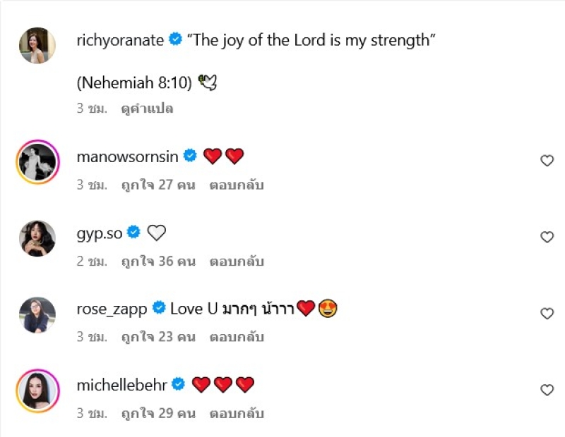 โดยทาง ริชชี่ให้โพสต์ว่า “The joy of the Lord is my strength” (Nehemiah 8:10)