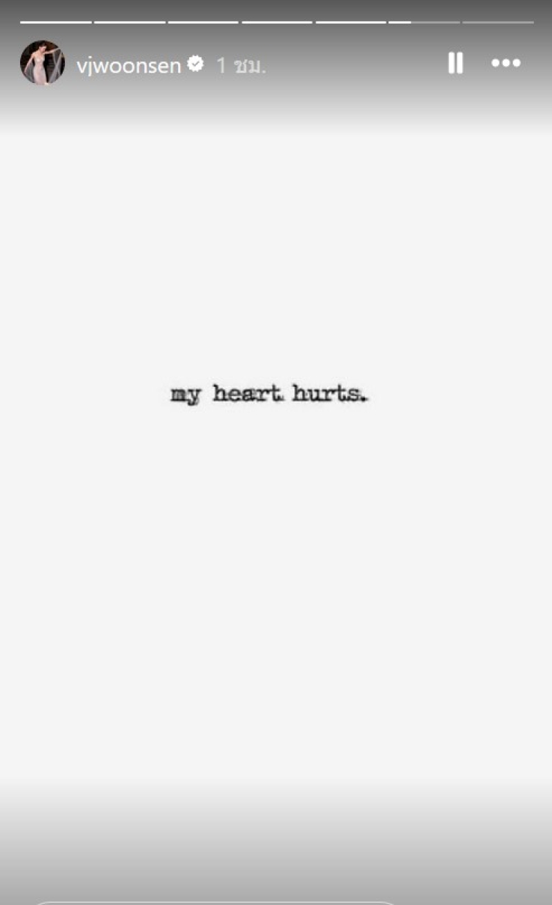 ล่าสุด วุ้นเส้น วิริฒิพา ได้ออกมาโพสต์สตอรี่สั้นๆว่า my heart hurts. แปล หัวใจฉันเจ็บปวด