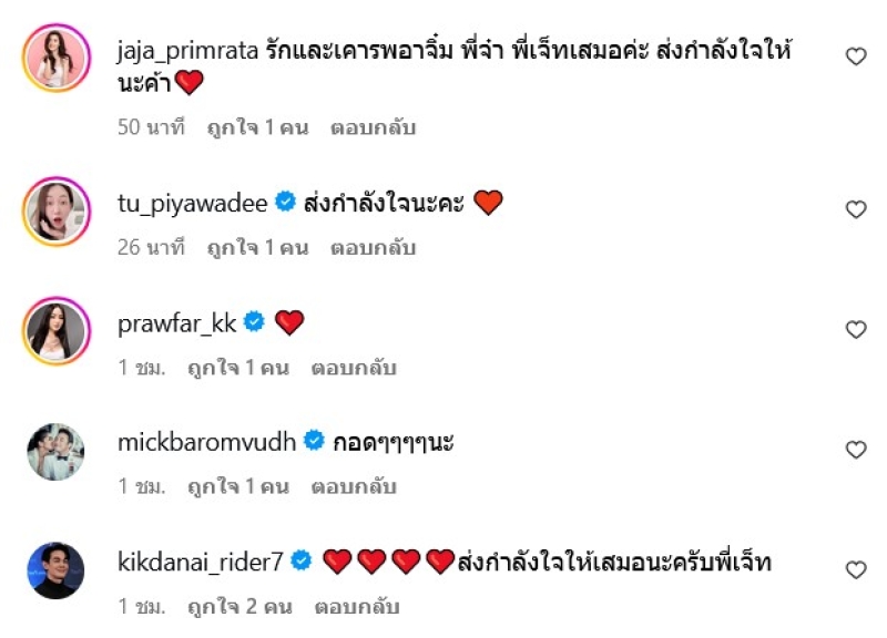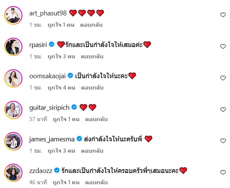 ท่ามกลางคนในวงการบันเทิง เข้ามาคอมเมนต์และส่งกำลังใจให้จำนวนมาก