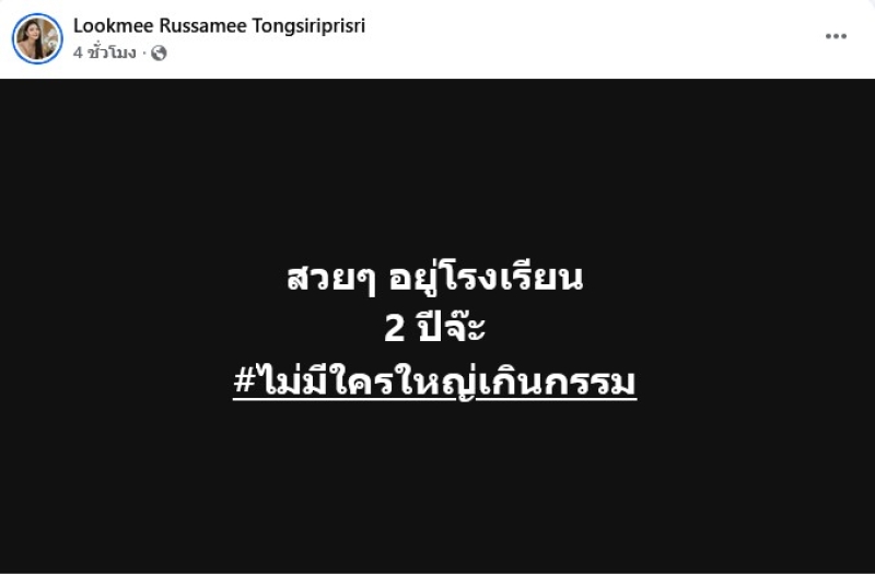 เรียกได้ว่า ทำเอาชาวเน็ตคอมเมนต์และถูกใจกันเพียบ เมื่อล่าสุด นางเเบบดัง ลูกหมี รัศมี ได้ออกมาโพสต์แซ่บ ผ่านทางfacebook โดยได้เผยว่า สวยๆ อยู่โรงเรียน 2 ปีจ๊ะ #ไม่มีใครใหญ่เกินกรรม