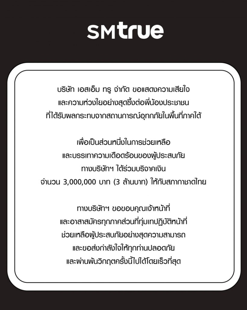 ทาง SUPER JUNIOR แสดงความเสียใจและห่วงใยอย่างสุดซึ้งต่อพี่น้องประชาชนที่ได้รับผลกระทบจากอุทกภัยในพื้นที่ภาคใต้