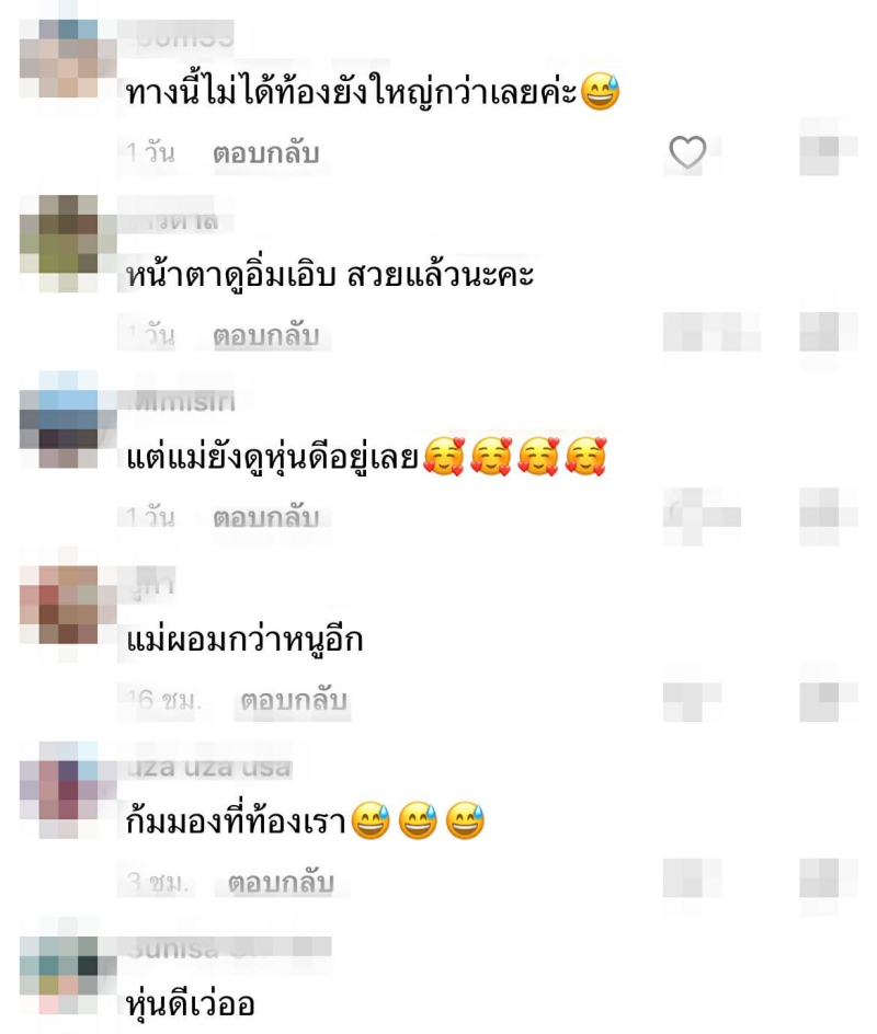 แฟนๆ ต่างเข้ามาแสดงความประทับใจอย่างล้นหลาม ไม่ว่าจะเป็นคำชมเรื่องรูปลักษณ์ ความสวย และความฟิตหลังคลอด เช่น เหมือนไม่ใช่คุณแม่หลังคลอดเลยค่ะ , หุ่นดีเวอร์ , ลดไวมาก สุดยอดแม่ไอซ์จริงๆ เป็นต้น