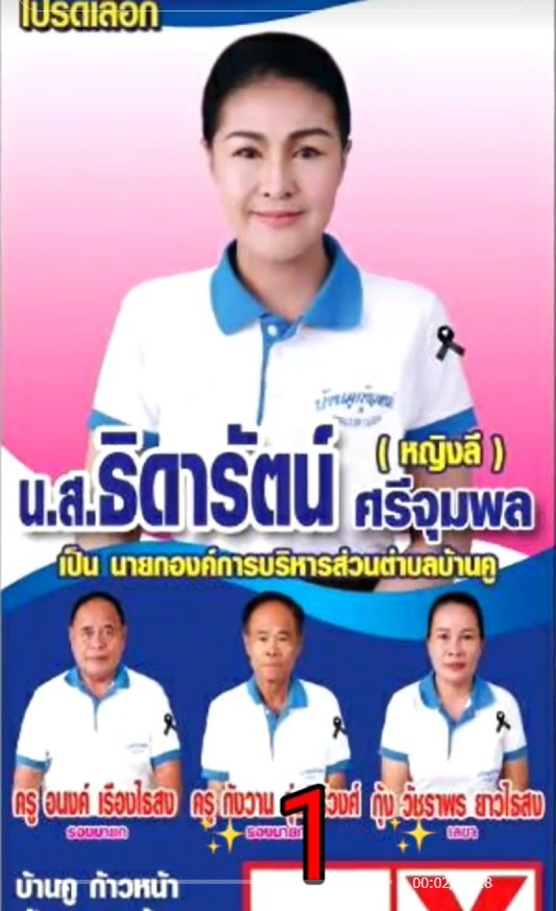 หมายเลข 1 พร้อมสโลแกน บ้านคูก้าวหน้า พัฒนาทุกด้าน บริหารงานโปร่งใส หัวใจคือประชาชน และได้เขียนแคปชั่นระบุว่า ขอเปิดประสบการณ์ใหม่ๆ โดยมีแฟนๆต่างเข้ามาคอมเมนต์ส่งกำลังใจกันอย่างมาก