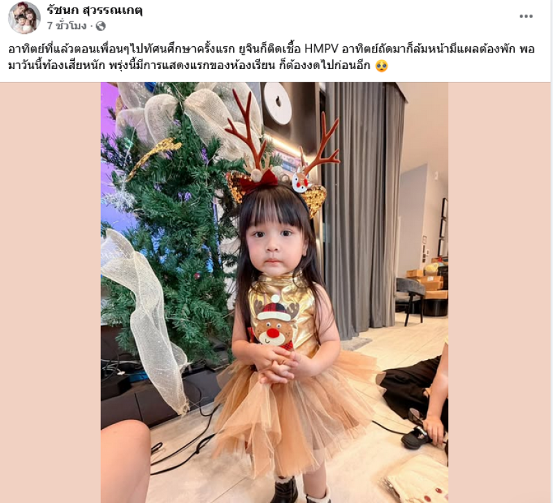 ล่าสุด เจนนี่ ได้ออกมาเผยว่า อาทิตย์ที่แล้วตอนเพื่อนๆไปทัศนศึกษาครั้งแรก ยูจินก็ติดเชื้อ HMPV อาทิตย์ถัดมาก็ล้มหน้ามีแผลต้องพัก พอมาวันนี้ท้องเสียหนัก พรุ่งนี้มีการแสดงแรกของห้องเรียน ก็ต้องงดไปก่อนอีก