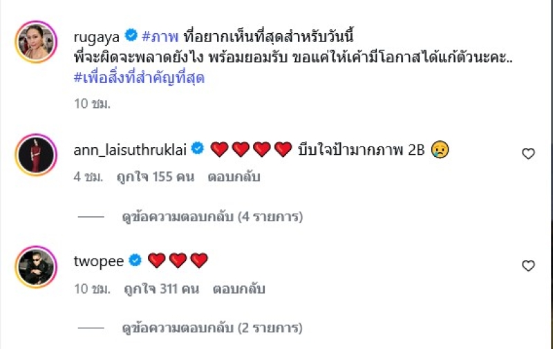 ด้านเพื่อนหนึ่งในแก๊งนางฟ้า อย่าง แอน อลิชา และ โต้ง ทูพี ก็ได้เข้ามาคอมเมนต์ด้วยเช่นกัน