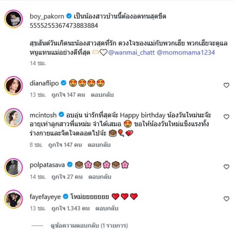 เหล่าพี่ๆในวงการและแฟนๆต่าง ส่งคำอวบพรให้จำนวนมาก