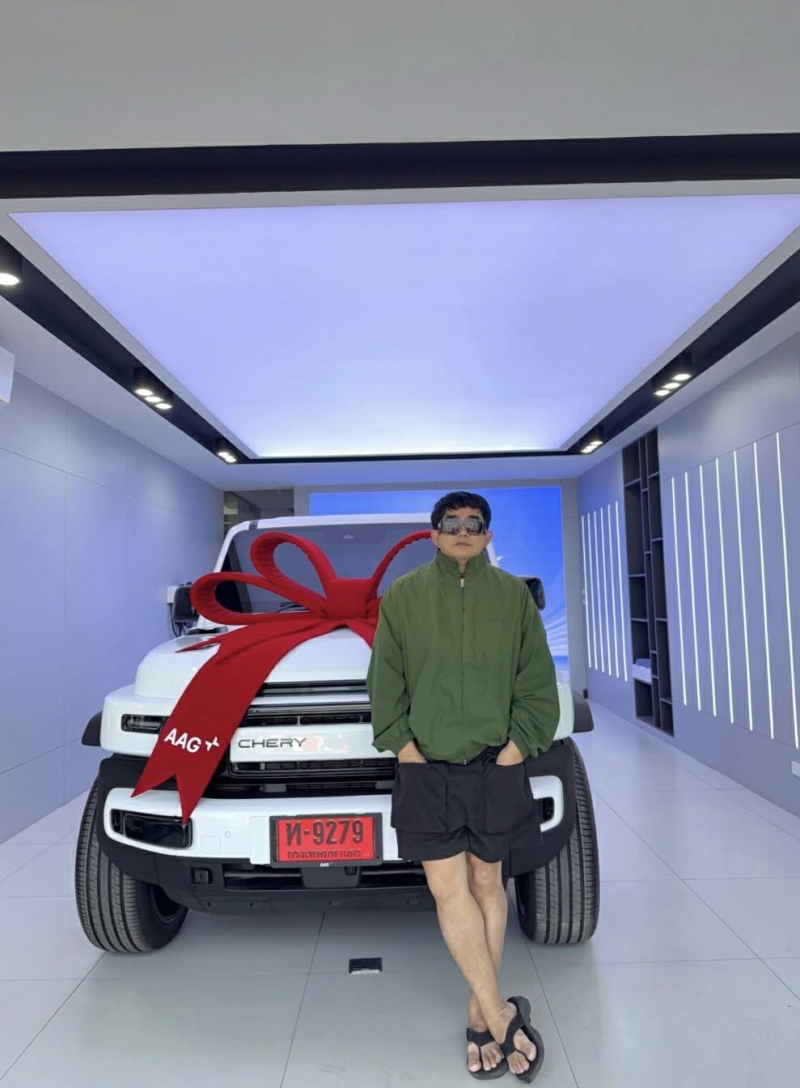 ความพิเศษไม่ได้มีแค่รถใหม่ แต่ยังมาพร้อมข้อความอวยพรตัวเองสุดคึกคัก สื่อถึงการเริ่มต้นปีด้วยพลังบวก และความมั่งคั่ง