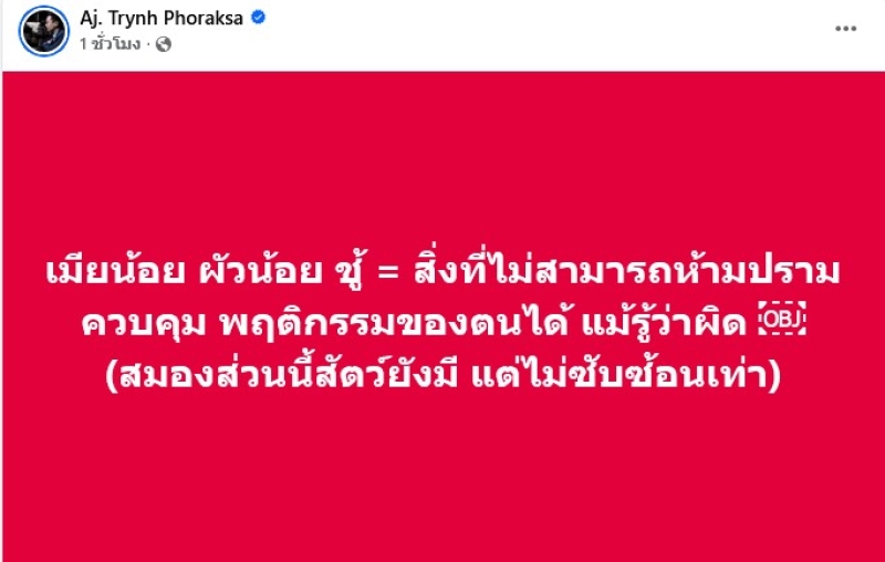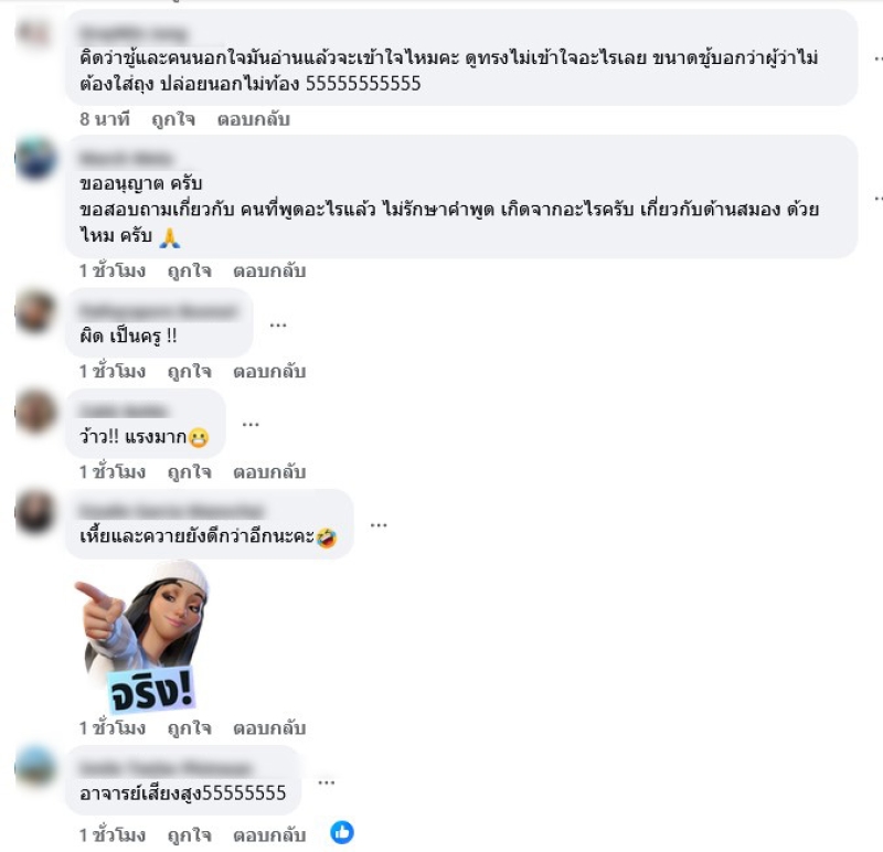 งานนี้ ด้านแฟนๆและชาวเน็ตเข้ามาคอมเมนสต์เพียบ เช่น อาจารย์คะ ถูกใจจริงๆเข้ากับสถานการณ์ตอนนี้เลยค่ะ,คนพวกนี้เติบโตมายังไงค่ะ พ่อแม่เป็นแบบอย่าง พ่อแม่สอนมา หรือสังคมหล่อหลอม หรืยังไง เยอะนะคะ ไม่รู้ผิดชอบชั่วดี ถูกผิด ศีลธรรม,ชอบมากคะ บรรทัดสุดท้ายยยย ถูกใจ ,คิดว่าชู้และคนนอกใจมันอ่านแล้วจะเข้าใจไหมคะ ดูทรงไม่เข้าใจอะไรเลย ขนาดชู้บอกว่าผู้ว่าไม่ต้องใส่ถุง ปล่อยนอกไม่ท้อง 55555555555 เป็นต้น