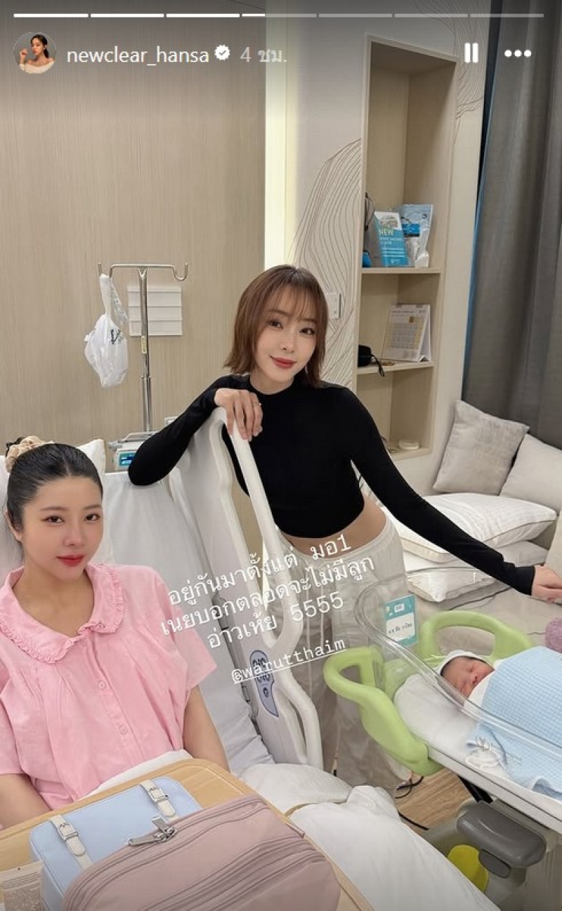 ล่าสุด ทาง นิวเคลียร์ หรรษา ก็ไม่พลาดเดินทางไปเยี่ยมถึงโรงพยาบาล พร้อมโพสต์สตอรี่อินสตาแกรม @newclear_hansa แซวกันแบบเพื่อนว่า "อยู่กันมาตั้งแต่ มอ 1 เนยบอกตลอดจะไม่มีลูก อ่าวเห้ย 5555"