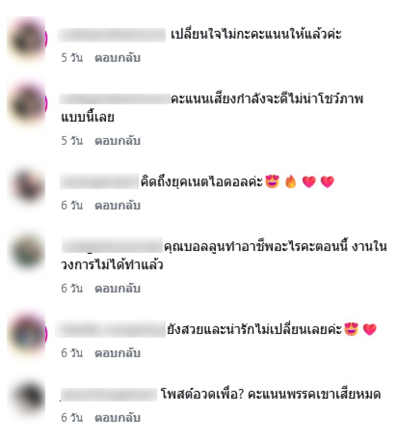 ล่าสุดในอินสตาแกรมของ บอลลูน มีชาวเน็ตต่างเข้ามาคอมเมนต์ถึงคะแนนเสียงในช่วงนี้ สำหรับการเมืองที่กำลังดุเดือด อาทิ เปลี่ยนใจไม่กะคะแนนให้แล้วค่ะ,คะแนนเสียงกำลังจะดีไม่น่าโชว์ภาพแบบนี้เลย,โพสต์อวดเพื่อ? คะแนนพรรคเขาเสียหมด