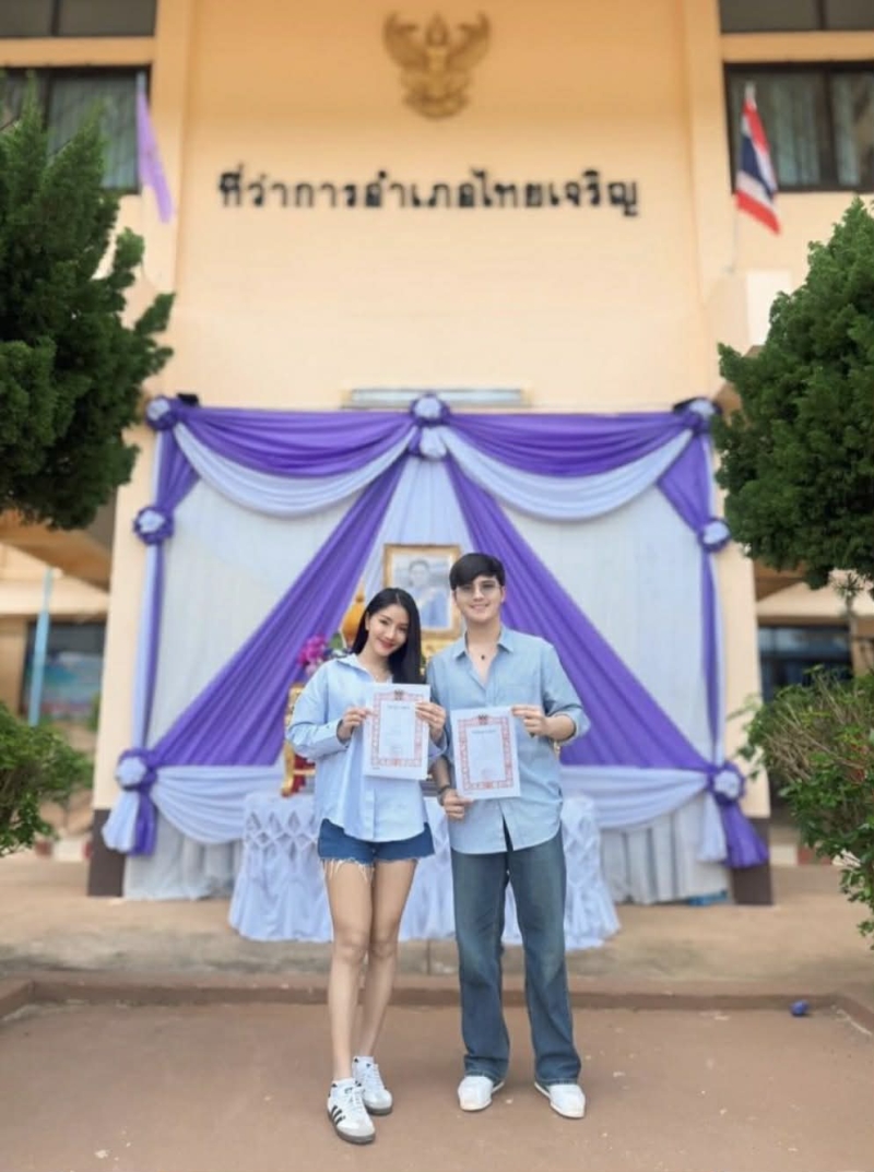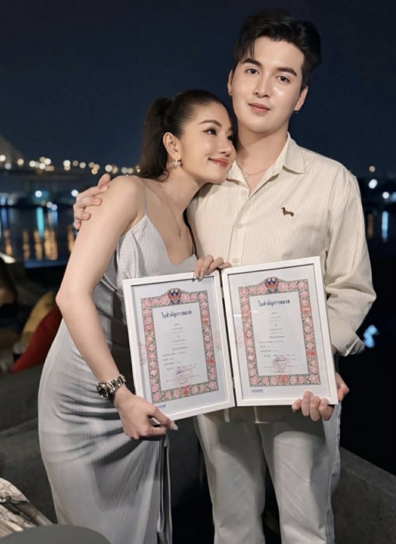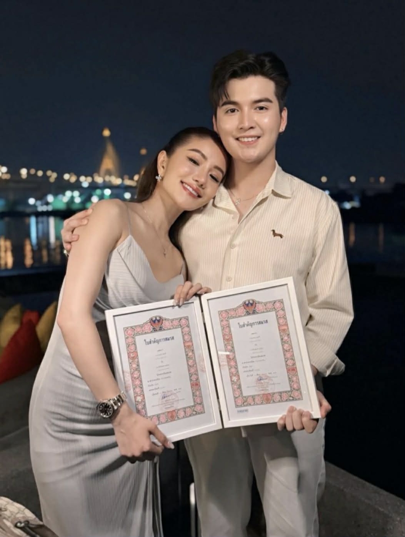 หลังจากจัดพิธีมงคลสมรสสุดอบอุ่นไปก่อนหน้านี้ ล่าสุด ทั้งคู่ ได้ดำเนินการจดทะเบียนสมรสเป็นที่เรียบร้อย ถูกต้องตามกฎหมายทุกประการ
