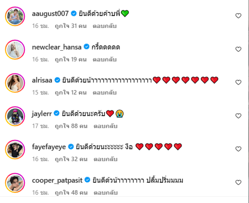 งานนี้ เหล่าเพื่อนๆในวงการเข้ามาแสดงความยินดีกันเพียบ ทางทีมข่าวก็ขอแสดงความยินดีด้วยนะตะ
