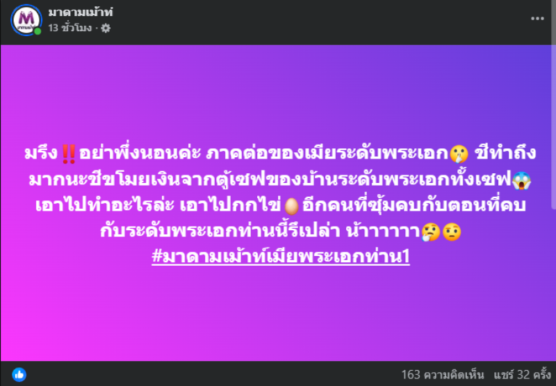 ล่าสุด เพจเม้าท์สายแฉ อย่าง มาดามเม้าท์ ได้ออกมาเปิดเผยข้อมูลเพิ่มเติม อ้างถึงพฤติกรรมในอดีตของฝ่ายหญิงที่เกี่ยวข้องกับการนำเงินออกจากทรัพย์สินในบ้าน และเชื่อมโยงกับความสัมพันธ์ลับกับบุคคลอื่น พร้อมส่งสัญญาณว่า ยังมีรายละเอียดอีกมากที่ยังไม่ถูกเปิดเผย