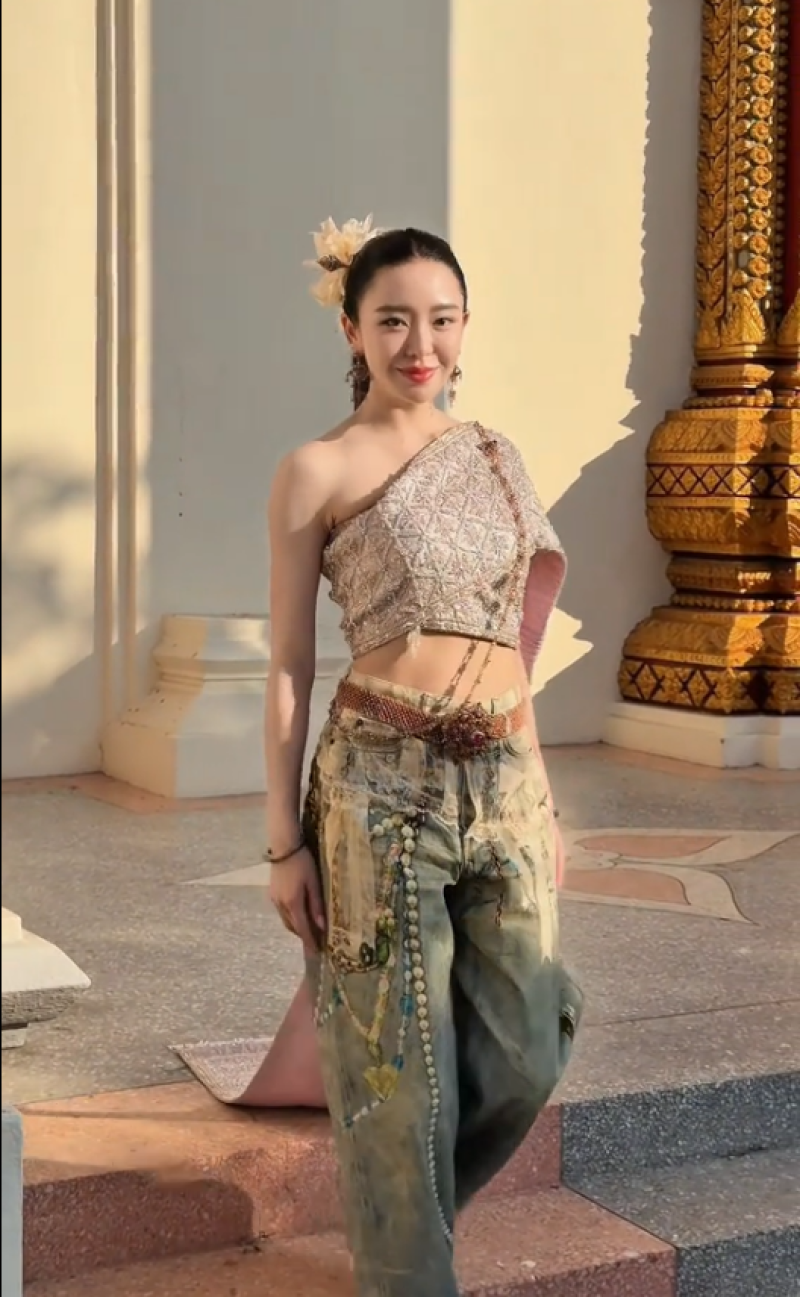 โดยห่มสไบใส่ยีนส์ ไปท่องเที่ยวที่จังหวัดสุรินทร์ พร้อมเขียนเเคปชั่นว่า หมวยมาช้า..แต่มีเพื่อนมาด้วยนะคะ ทั้งนี้กลับมีชาวเน็ตรายหนึ่งเข้ามาคอมเมนต์เชิงดราม่าว่า หวังว่าคนจะไม่ไปขึ้นงาช้างตามนะ น้องคงหนักแน่ๆ ถึงจะบอกแค่แป๊บเดียวก็เถอะ