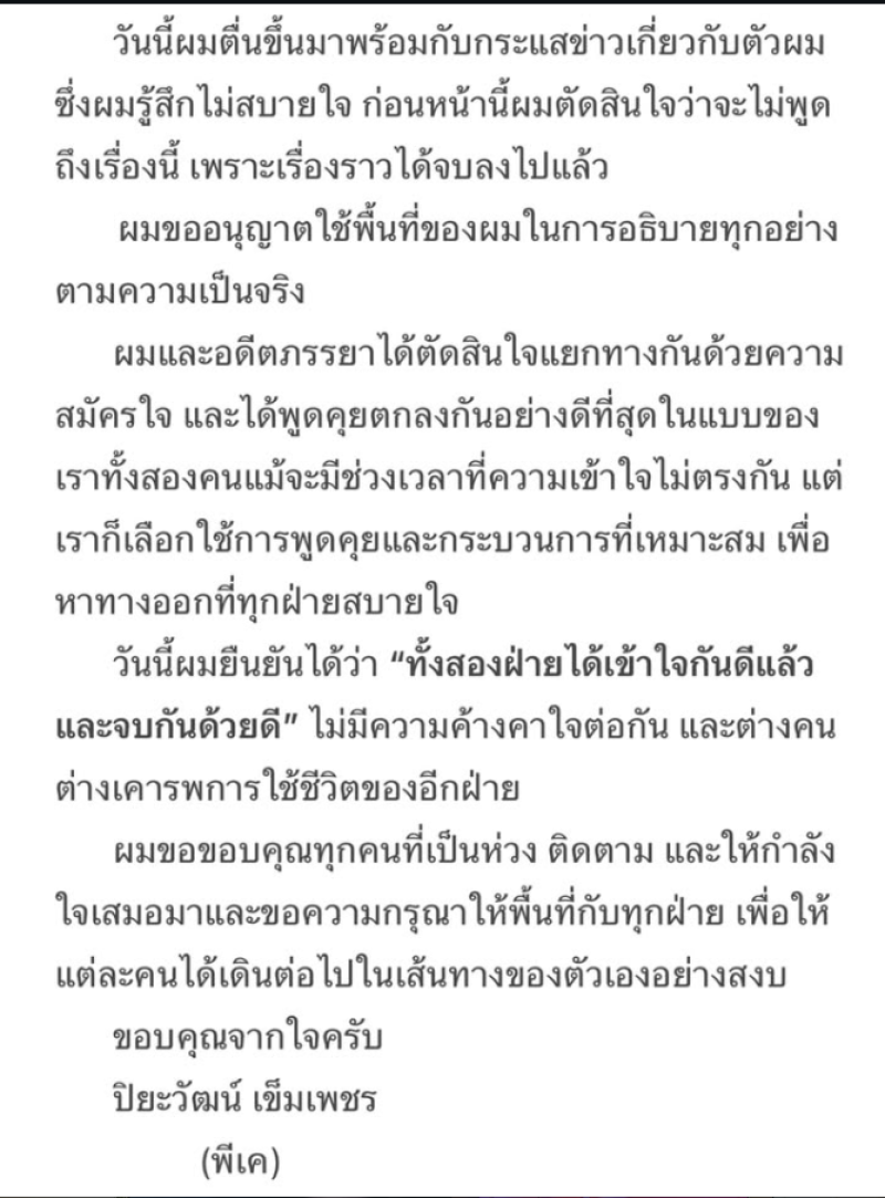 ล่าสุด พีเค ได้ออกเคลื่อนไหว พร้อมชี้แจงทุกอย่าง ว่า ผมขออนุญาตใช้พื้นที่ของผมในการอธิบายทุกอย่างตามความเป็นจริง