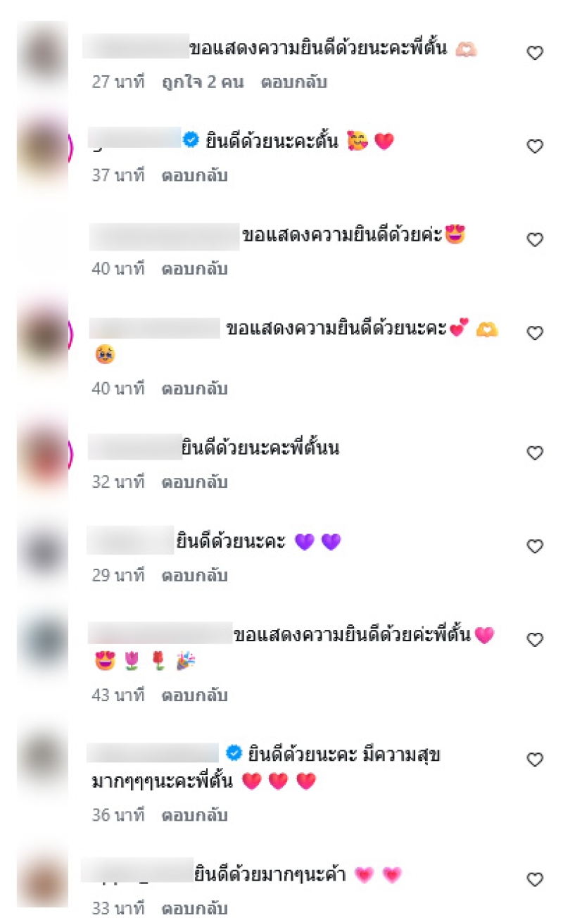 โดยทั้งคู่นั่งควงแขนกัน และแต่งตัวสวยหล่อ ซึ่งฉากเบื้อหลังนั้นมีชื่อภาษาอังกฤษของทั้งคู่ ท่ามกลางแฟนๆเเละคนในวงการเข้ามาคอมเมนต์แสดงความยินดีกันอย่างมากมาย